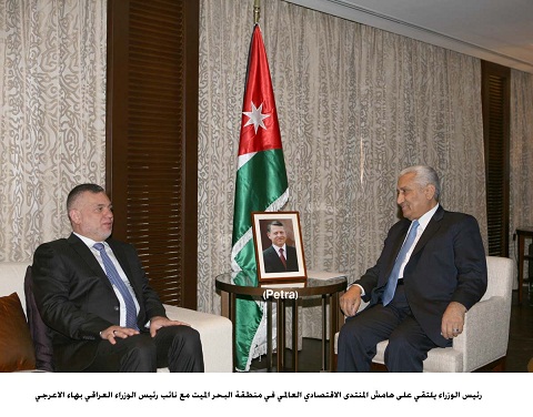 وبحث النسور مع نائبي رئيس الوزراء العراقي سبل تعزيز العلاقات الثنائية والتعاون المشترك في المجالات الاقتصادية والتجارية والخطوات التي سيتم اتخاذها لتنفيذ مشروع انبوب النفط بين البلدين واعادة تأهيل الطريق البري بينهما اضافة الى الربط الكهربائي والربط السككي بين البلدين وفي اطار مشروع اقليمي عربي مشترك .