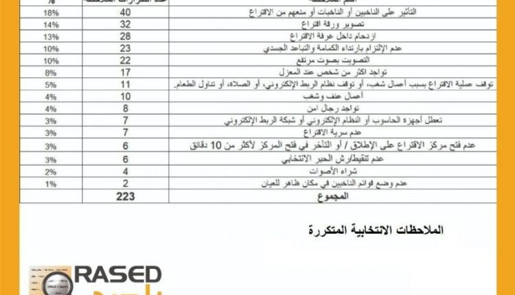 راصد: شراء أصوات وأعمال شغب وتصويت علني وتصوير اوراق