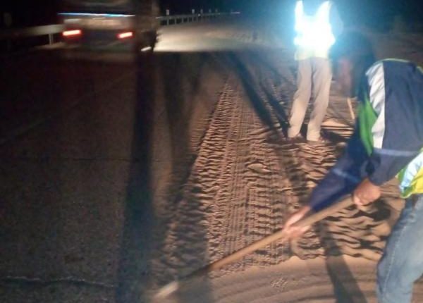 وكالة الناس – تعاملت كوادر مديرية أشغال العقبة، اليوم الخميس، وبشكل فوري مع تجمع للرمال على جوانب طريق وادي عربة – قاع السعيديين.