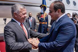 وكالة الناس – وصل جلالة الملك عبدالله الثاني، يرافقه سمو الأمير الحسين بن عبدالله الثاني ولي العهد، اليوم الأحد، إلى القاهرة.