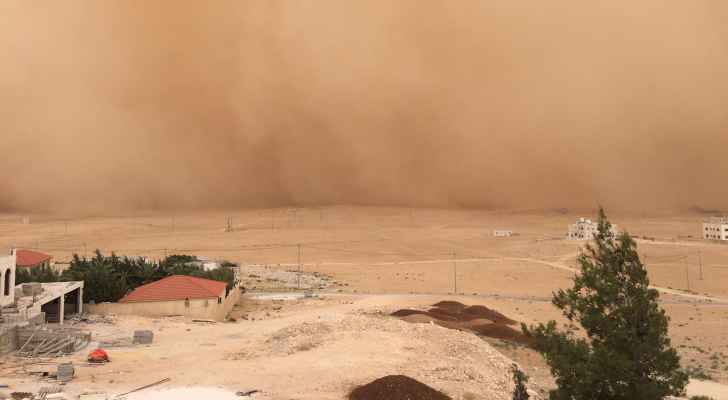 وانخفضت الرؤية الأفقية بشكل حاد وقد وصلت الى حد الانعدام، نتيجة نشاط السُحب الرعدية فوق مناطق البادية الشرقية ومرافقتها لهبوب رياح قوية عملت على تشكل العواصف الرملية