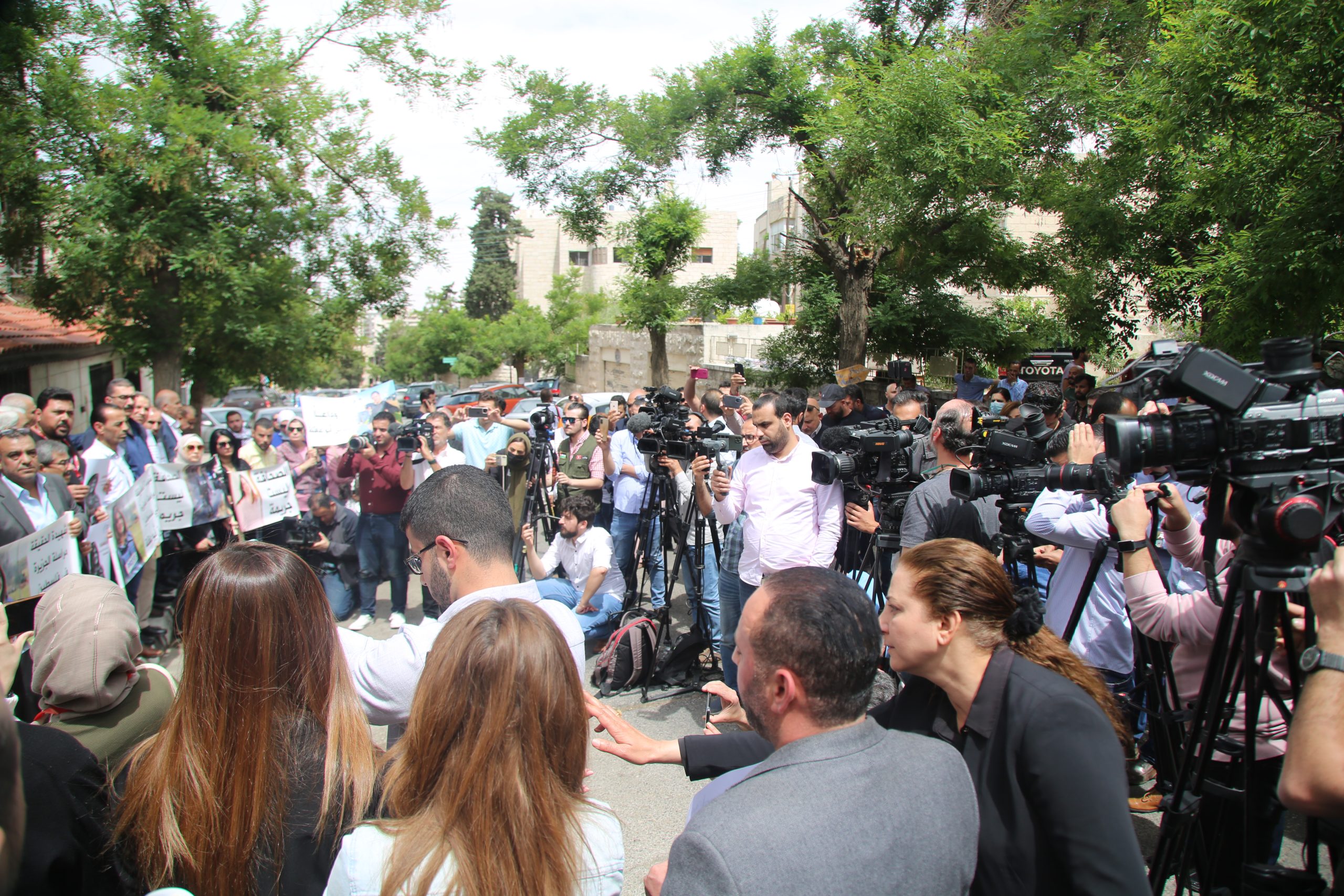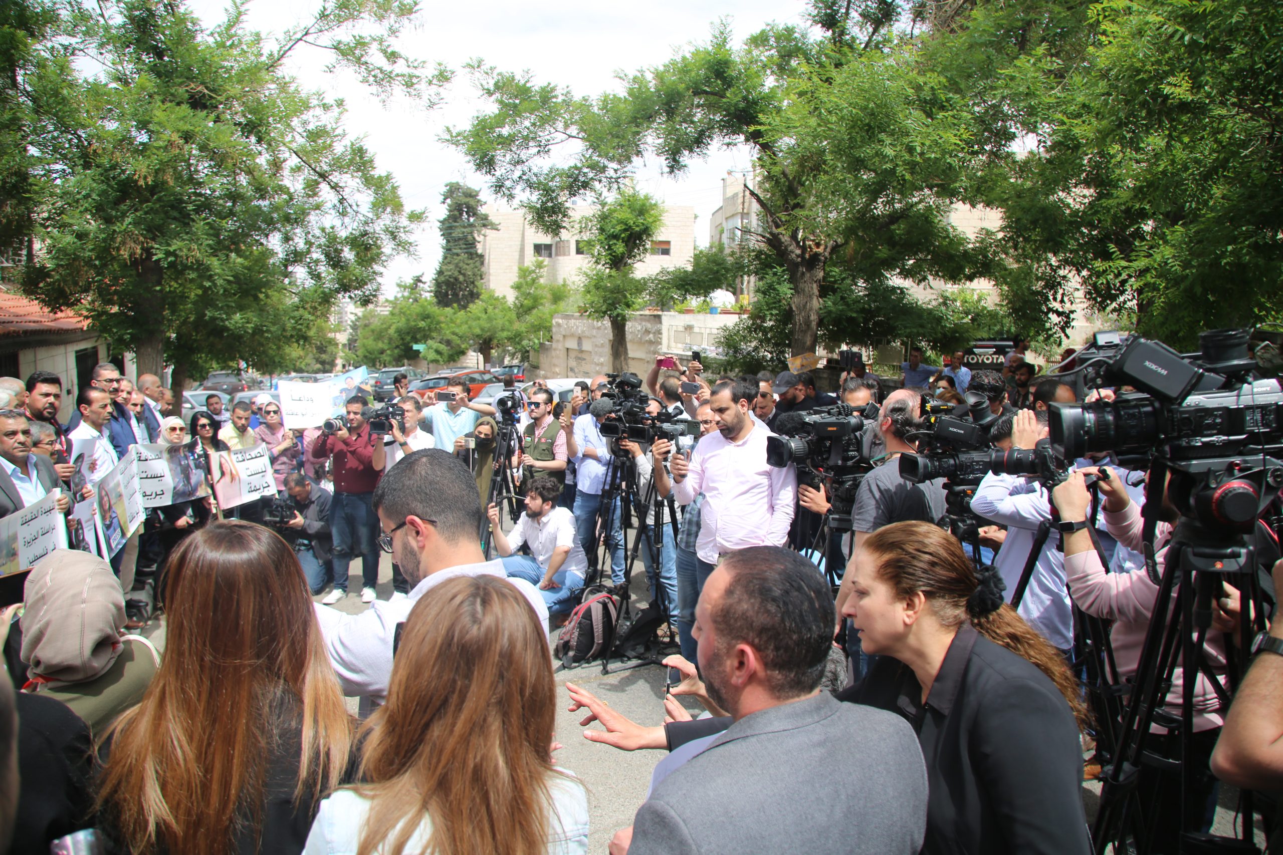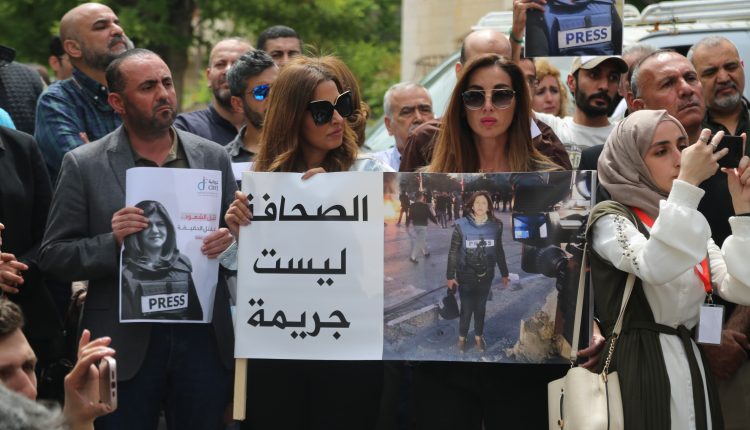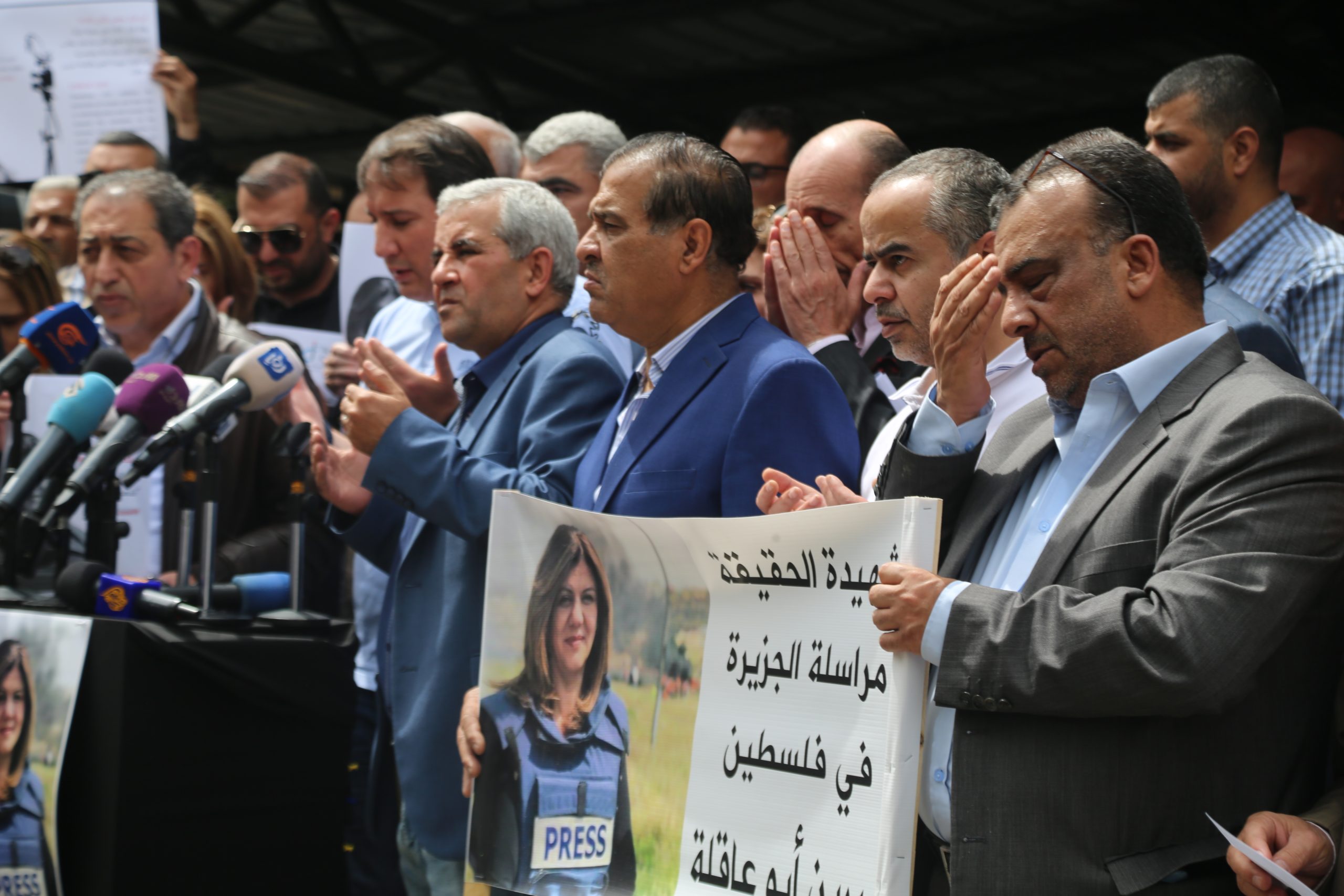 وكالة الناس ــ نفذ صحفيون أردنيون أمام مكتب قناة الجزيرة في عمّان، وقفة احتجاجية على جريمة اغتيال مراسلة القناة في فلسطين شيرين أبو عاقلة على يد قوات الاحتلال الإسرائيلي.