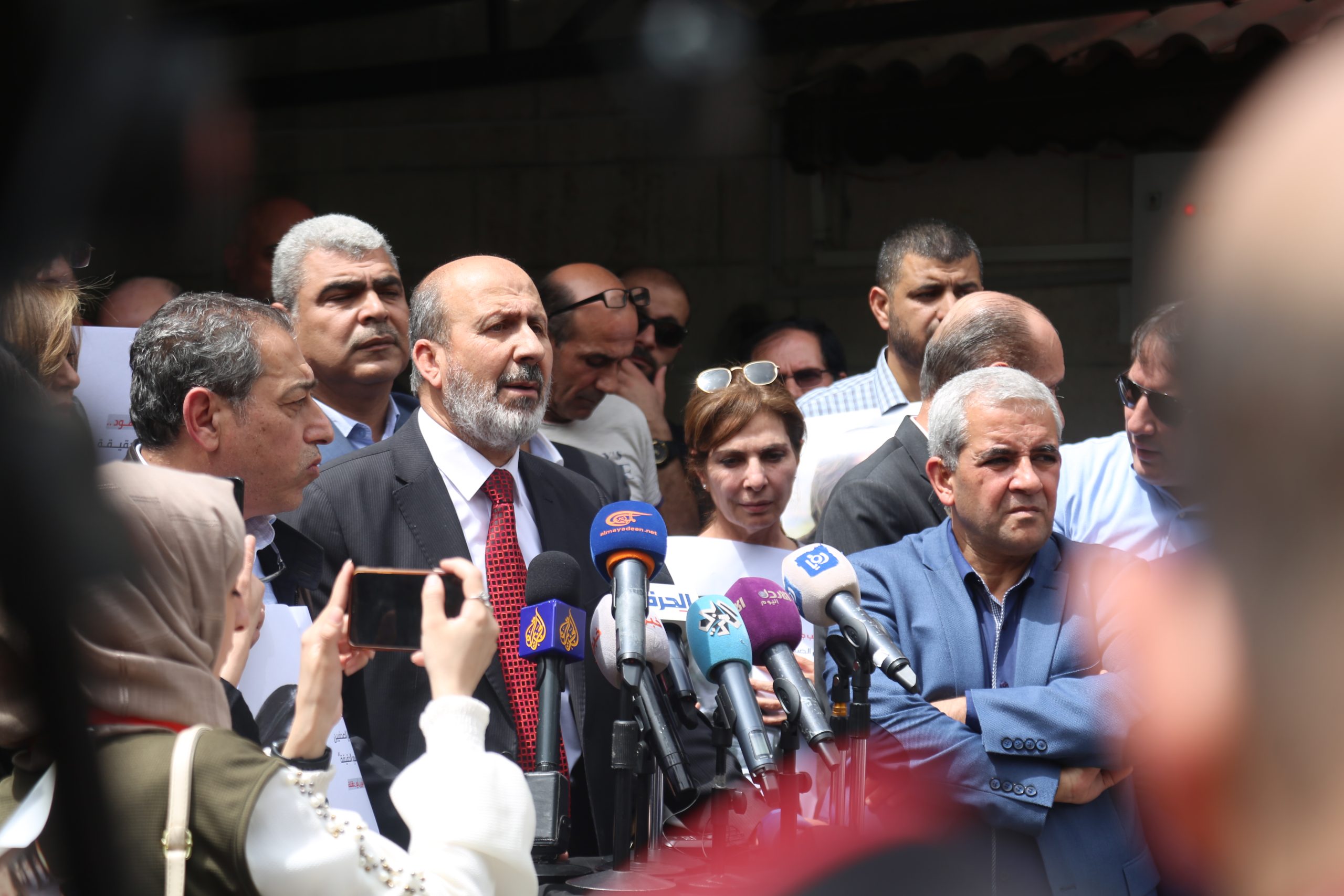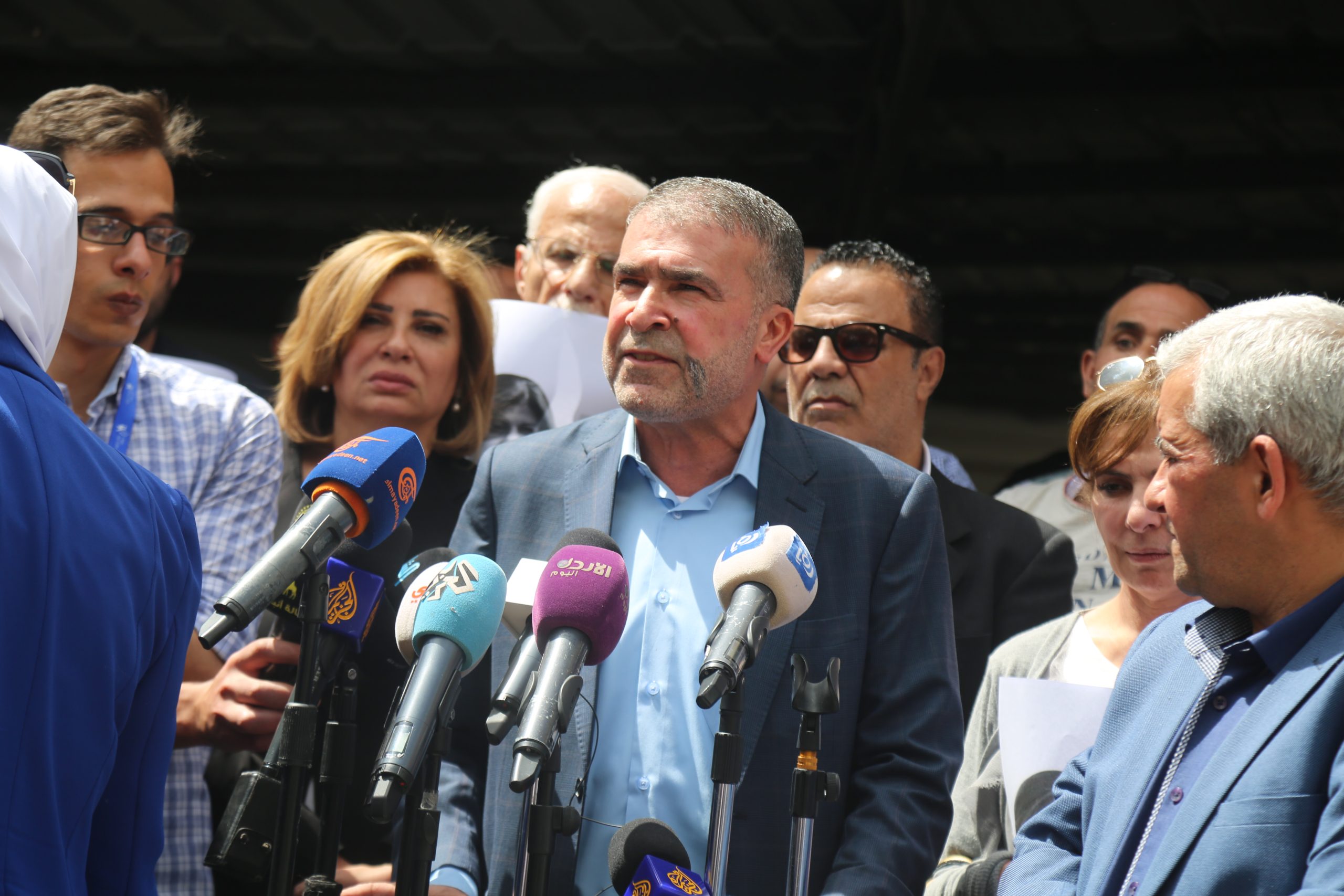 ورفع المشاركون يافطات تستنكر الفعل الإجرامي الذي ارتكبته قوات الاحتلال.