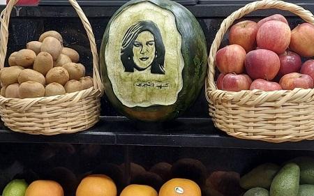 ويستخدم الهندي السكين في الرسم عوضا عن الألوان، واستغرقت لوحة الصحفية شيرين أبو عاقلة ساعتين من العمل، لتجذب مئات الزائرين الى المحل لالتقاط الصور.