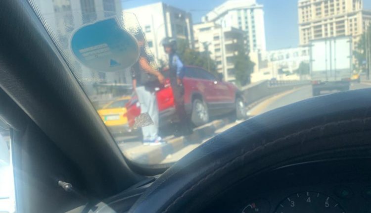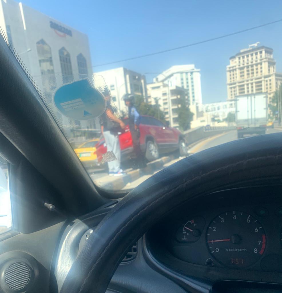 وتسبب الحادث بأزمة سير بفعل توقف المركبات على جنبات الطريق في الدوار الخامس.