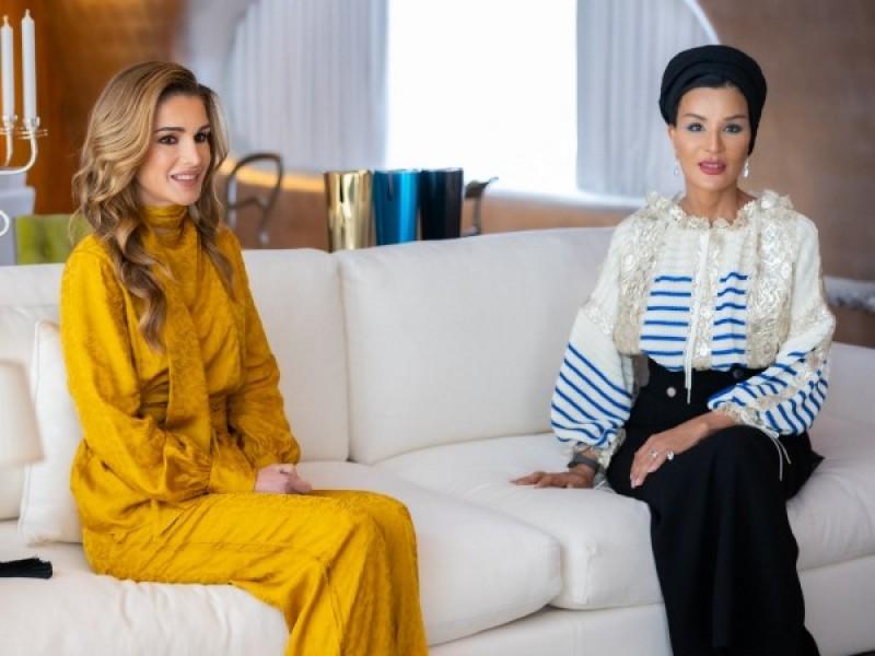 الملكة رانيا تتقبل العزاء من الشيخة موزا بعمان