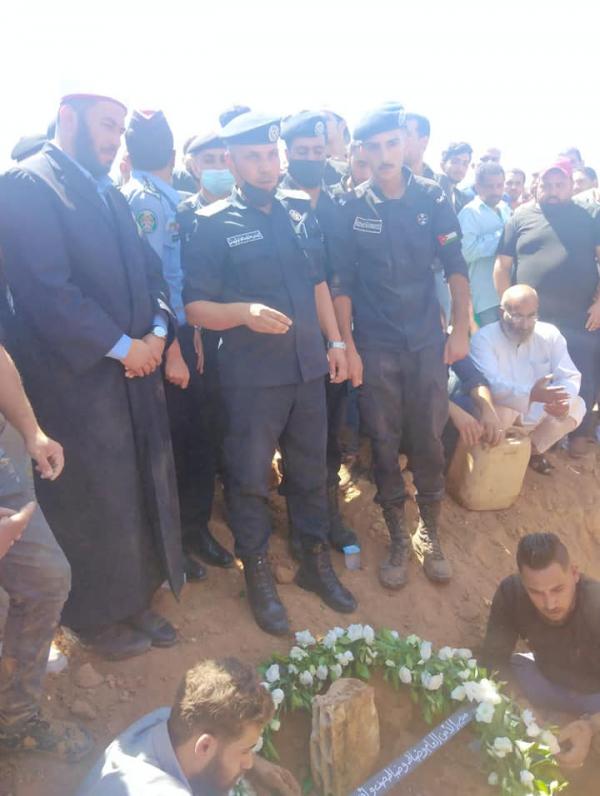 وقد شارك في تشييع الجثمان مدير شرطة شرق عمان بالإنابة العقيد محمود الفايز وعدد من ضباط وضباط صف وأفراد جهاز الأمن العام.