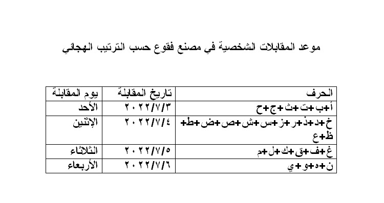 وكالة الناس –  دعت وزارة العمل الشباب الذكور الذين سجلوا للعمل في الفترة المسائية في مصنع لواء فقوع بمحافظة الكرك لحضور المقابلات الشخصية.