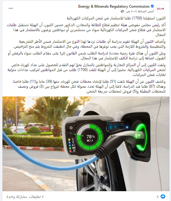 اللبون: استقبلنا 1700 طلب لتركيب عدادات منزلية لشحن المركبات