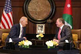 وأعاد الرئيس بايدن التأكيد على دعم الولايات المتحدة المطلق للأردن كحليف رئيس للولايات المتحدة وقوة للسلام في المنطقة، ولقيادة الملك عبدالله الثاني.