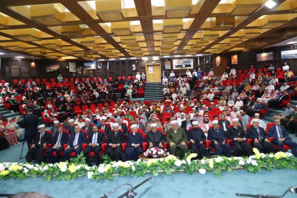 وقال الخلايلة خلال الاحتفال الذي حضره سماحة مفتي عام المملكة الشيخ عبدالكريم الخصاونة وسماحة قاضي القضاة الشيخ عبدالحافظ الربطة وسماحة مفتي عام القوات المسلحة الأردنية الجيش العربي العميد الركن الدكتور ماجد الدراوشة، وامين عام وزارة الأوقاف الدكتور عبدالله العقيل، وعدد من الامناء العامين والمسؤولين والمئات من الحفاظ والحافظات للقرآن الكريم من أبناء مراكز الاسلامية و دور القرآن الكريم التابعة للوزارة أننا نلتقي دائما على كتاب الله سبحانه وتعالى الذي نزله ليكون للعالمين جميعا دون ان تحتكره فئة على اخرى مؤكدا ان الله تعالى خاطب مطلق الناس في العديد من الآيات التي جاءت في القرآن الكريم.