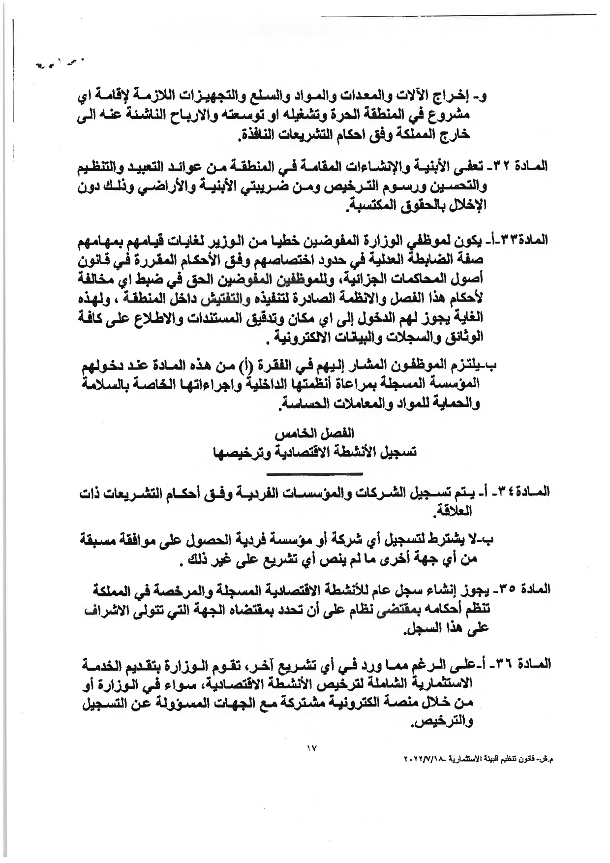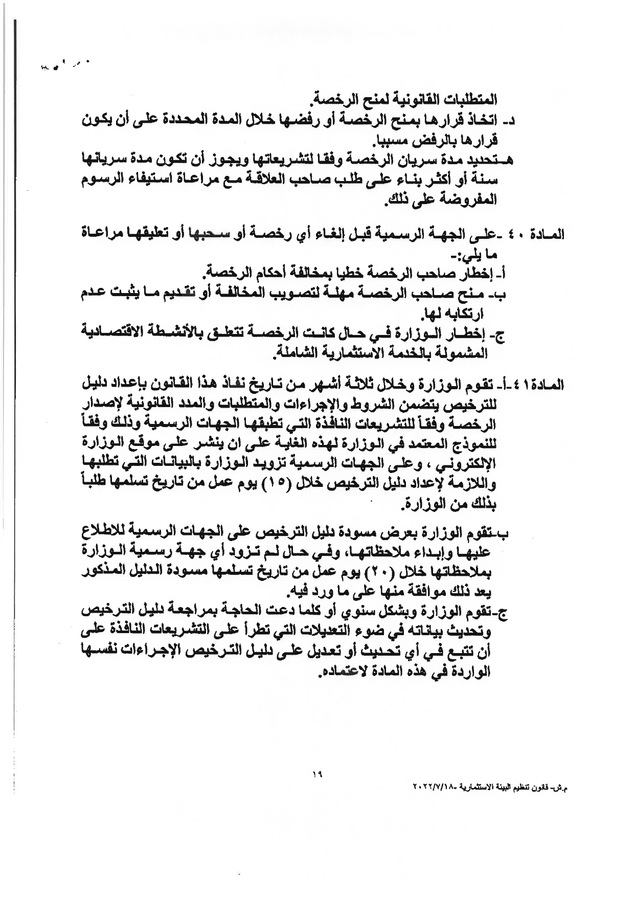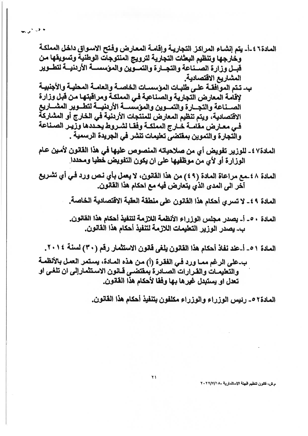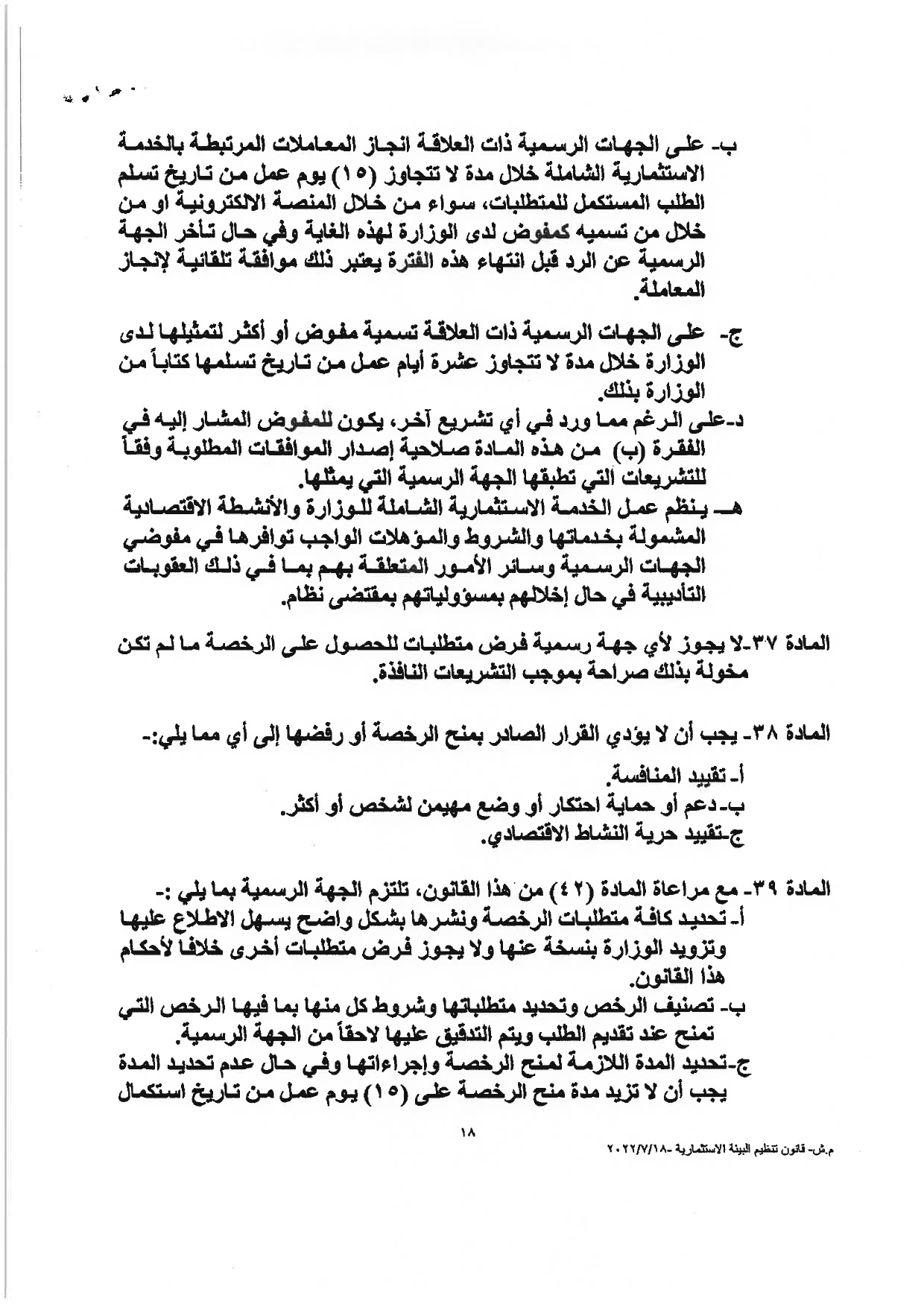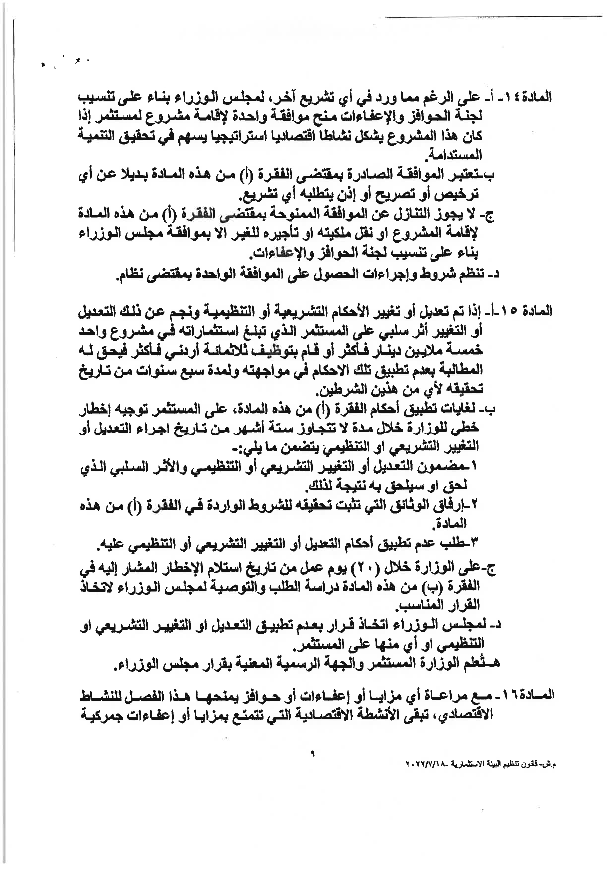 “وكالة الناس” تنشر النصّ الكامل لمشروع قانون تنظيم البيئة الاستثماريَّة لسنة 2022م