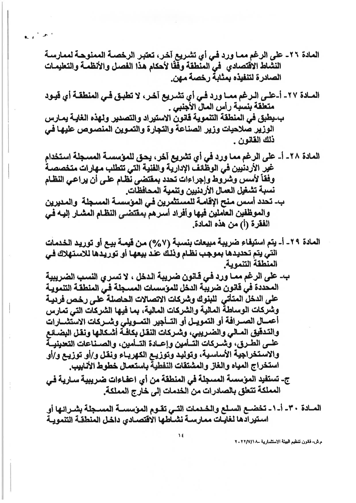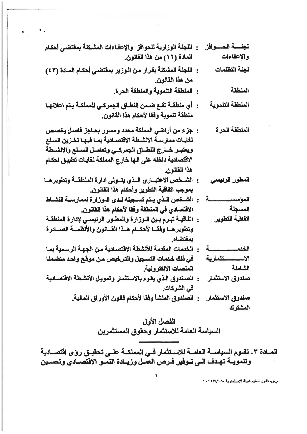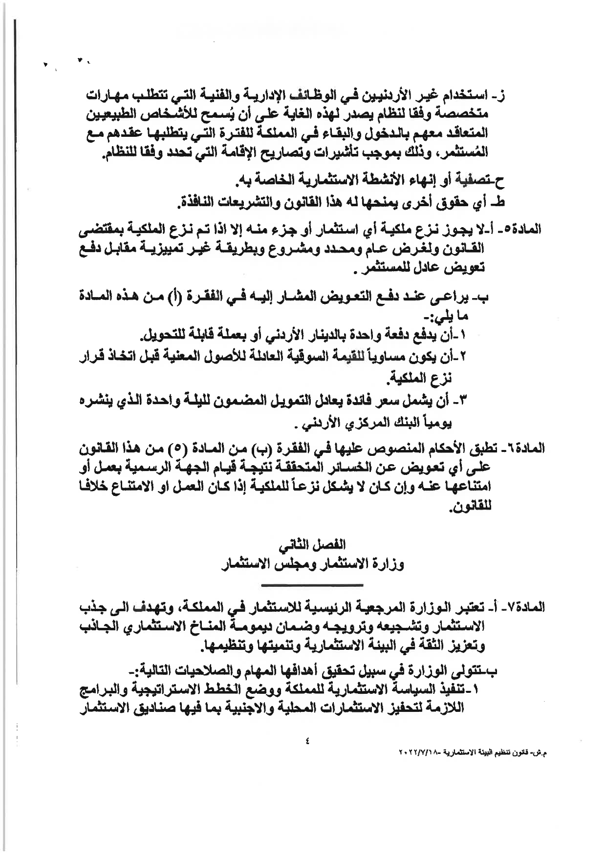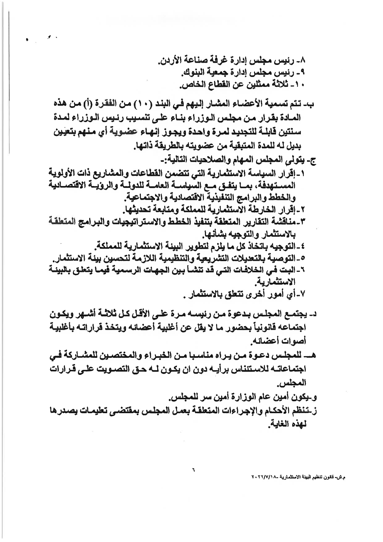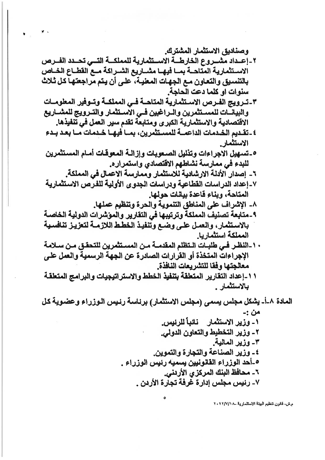 وكالة الناس – نشرت الحكومة مساء الثلاثاء النصّ الكامل لمشروع قانون تنظيم البيئة الاستثماريَّة، والأسباب الموجبة له، والذي أقرَّه مجلس الوزراء يوم الأحد الماضي، وأحالته الحكومة إلى مجلس النوَّاب الذي سيشرع بمناقشته خلال الدَّورة البرلمانيَّة الاستثنائيَّة، التي ستبدأ يوم غدٍ الأربعاء.