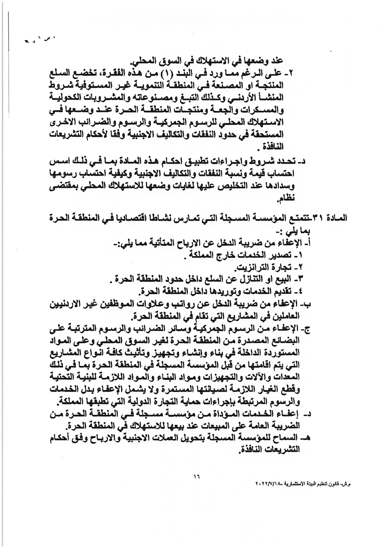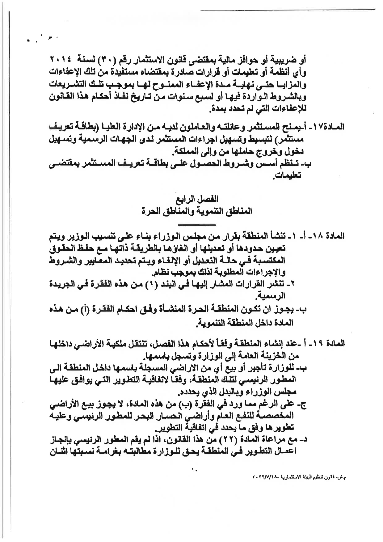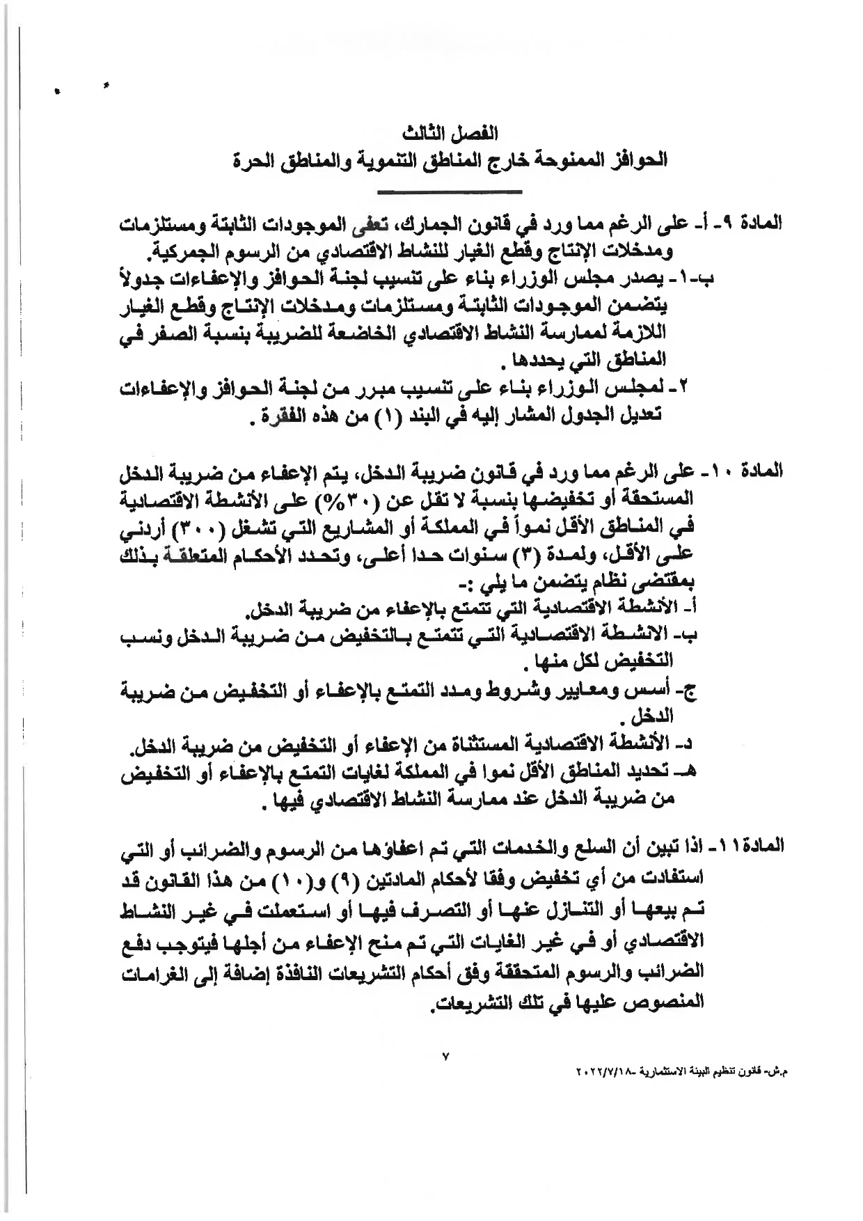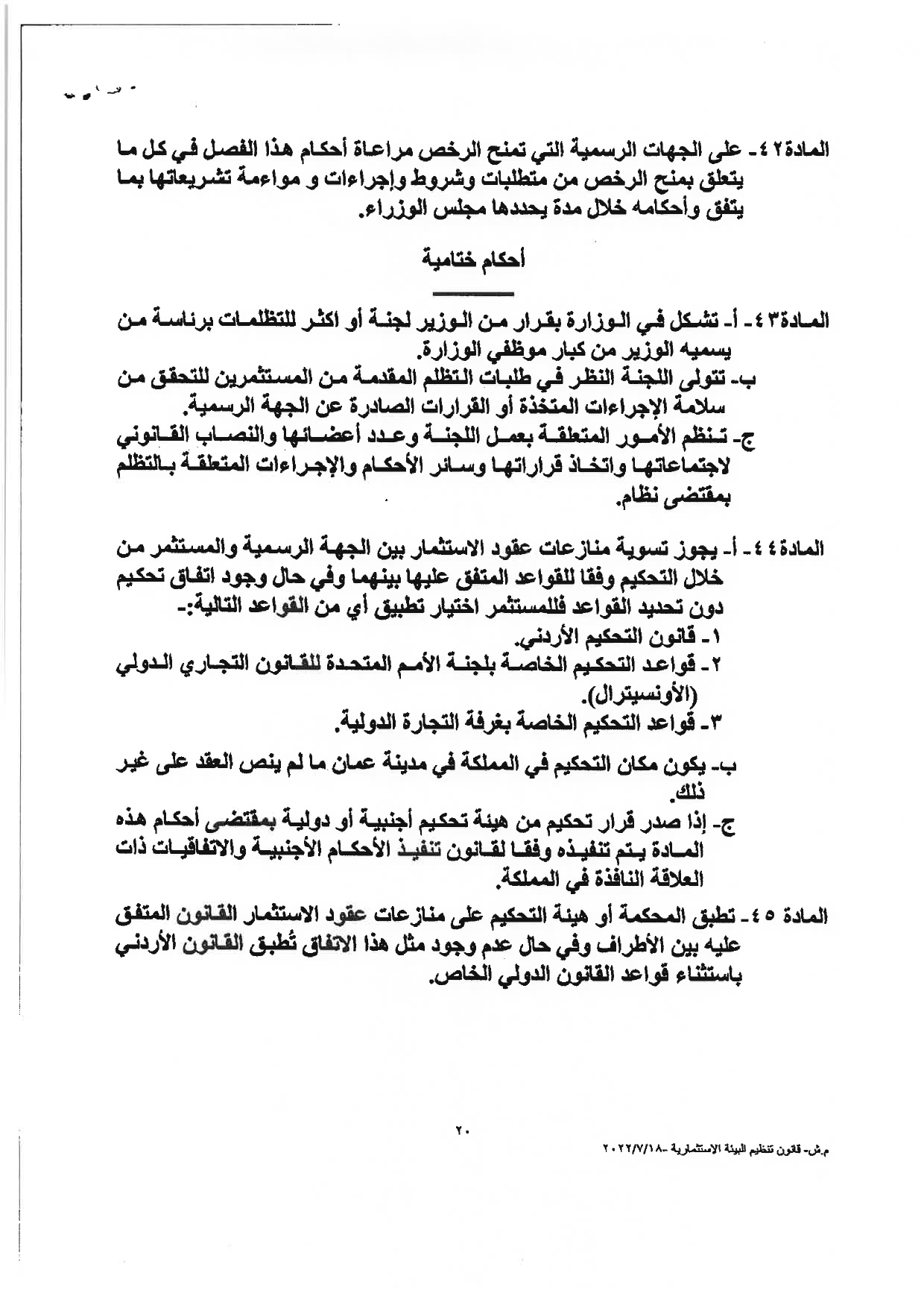 وكالة الناس – نشرت الحكومة مساء الثلاثاء النصّ الكامل لمشروع قانون تنظيم البيئة الاستثماريَّة، والأسباب الموجبة له، والذي أقرَّه مجلس الوزراء يوم الأحد الماضي، وأحالته الحكومة إلى مجلس النوَّاب الذي سيشرع بمناقشته خلال الدَّورة البرلمانيَّة الاستثنائيَّة، التي ستبدأ يوم غدٍ الأربعاء.