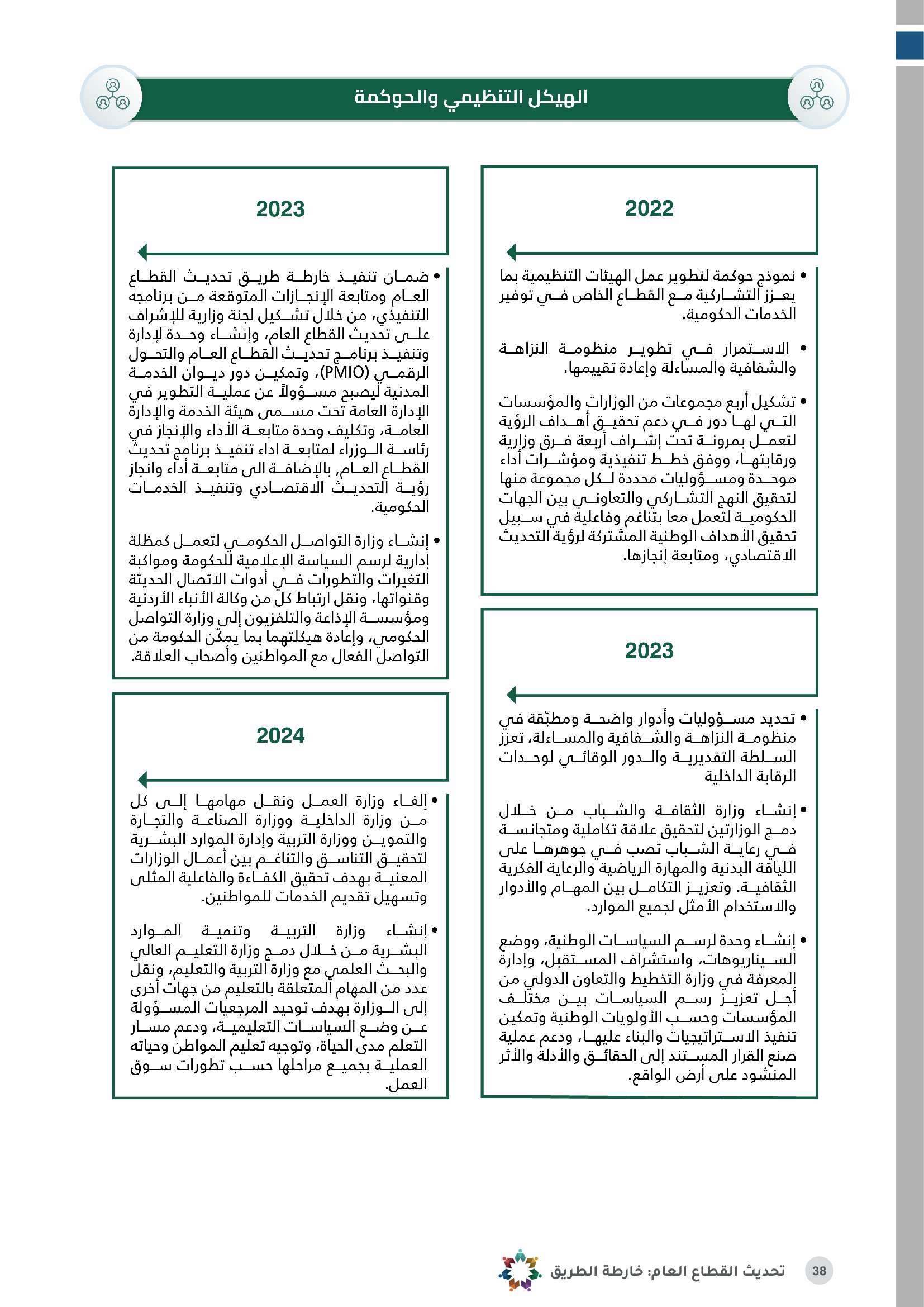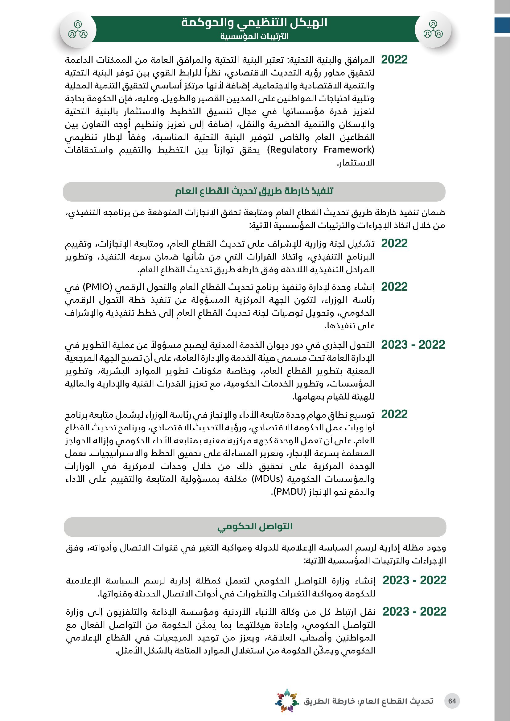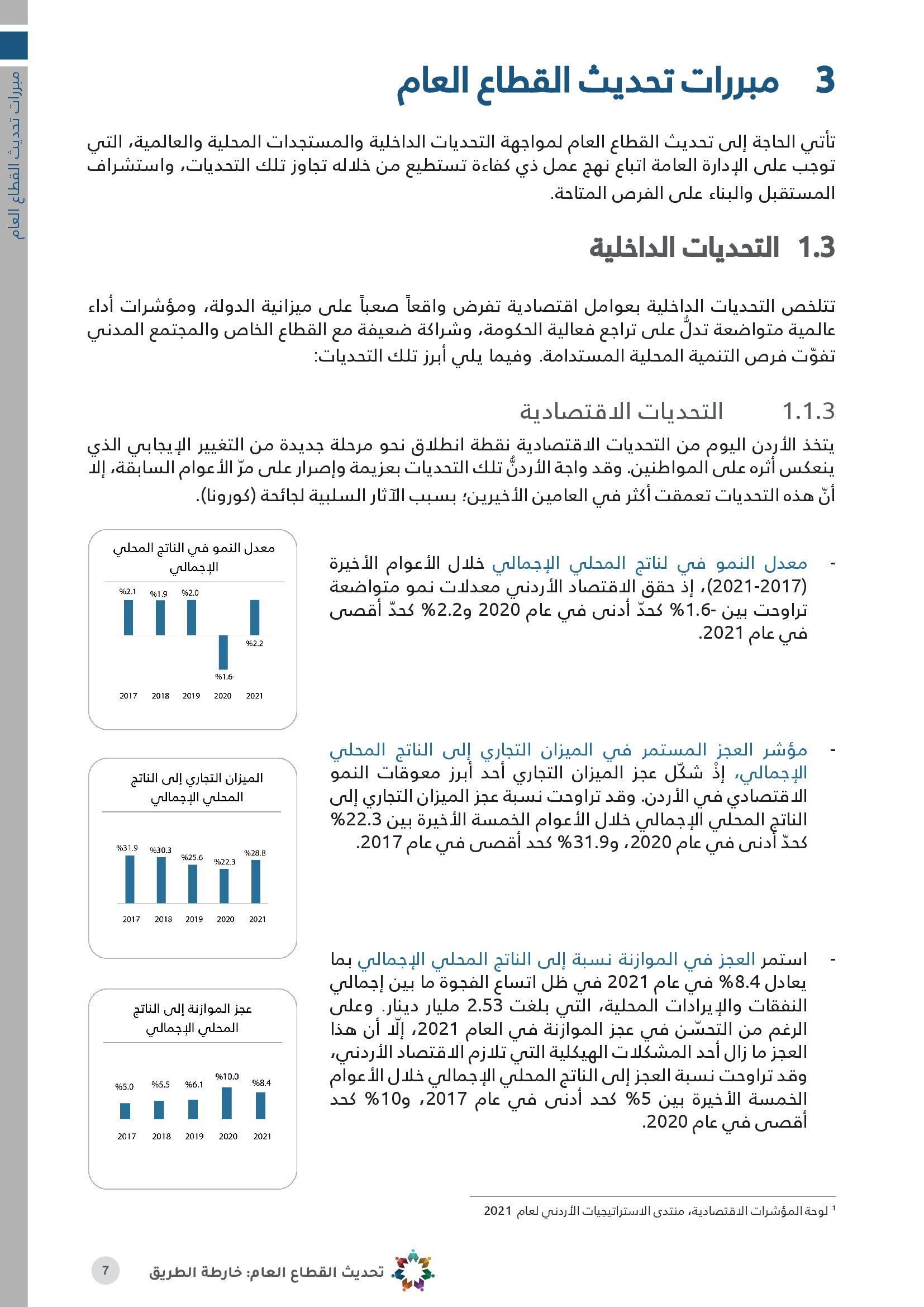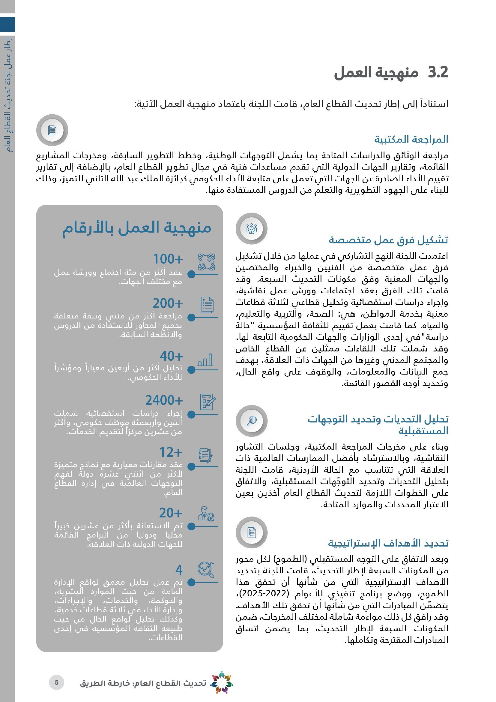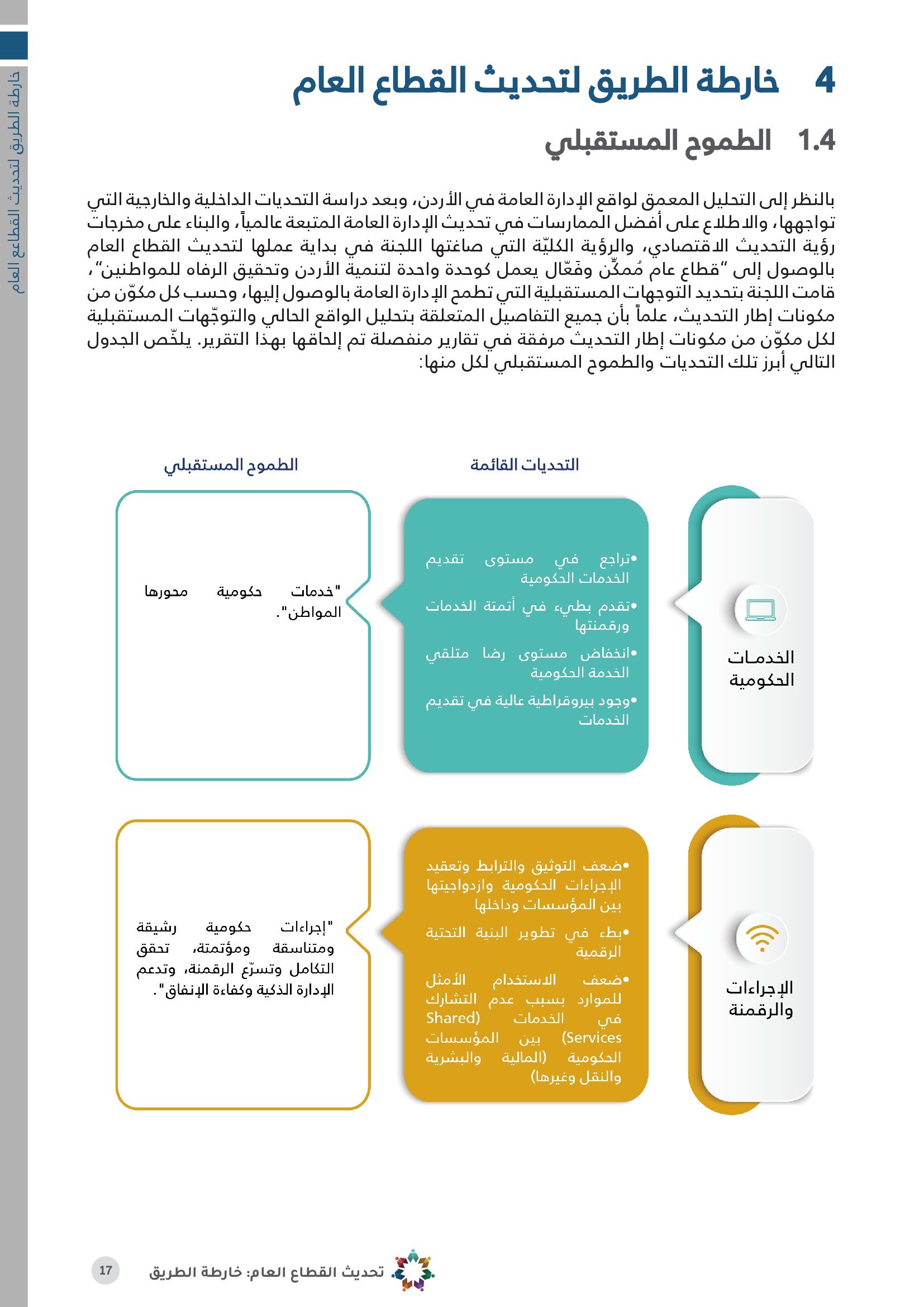 رئيس الوزراء الدكتور بشر الخصاونة، قال إن الخطة تبدأ اعمالها هذا العام وتستمر إلى العام 2025 لنصل إلى قطاع عام ممكن يحقق التنمية للاردن والرفاه للمواطنين.