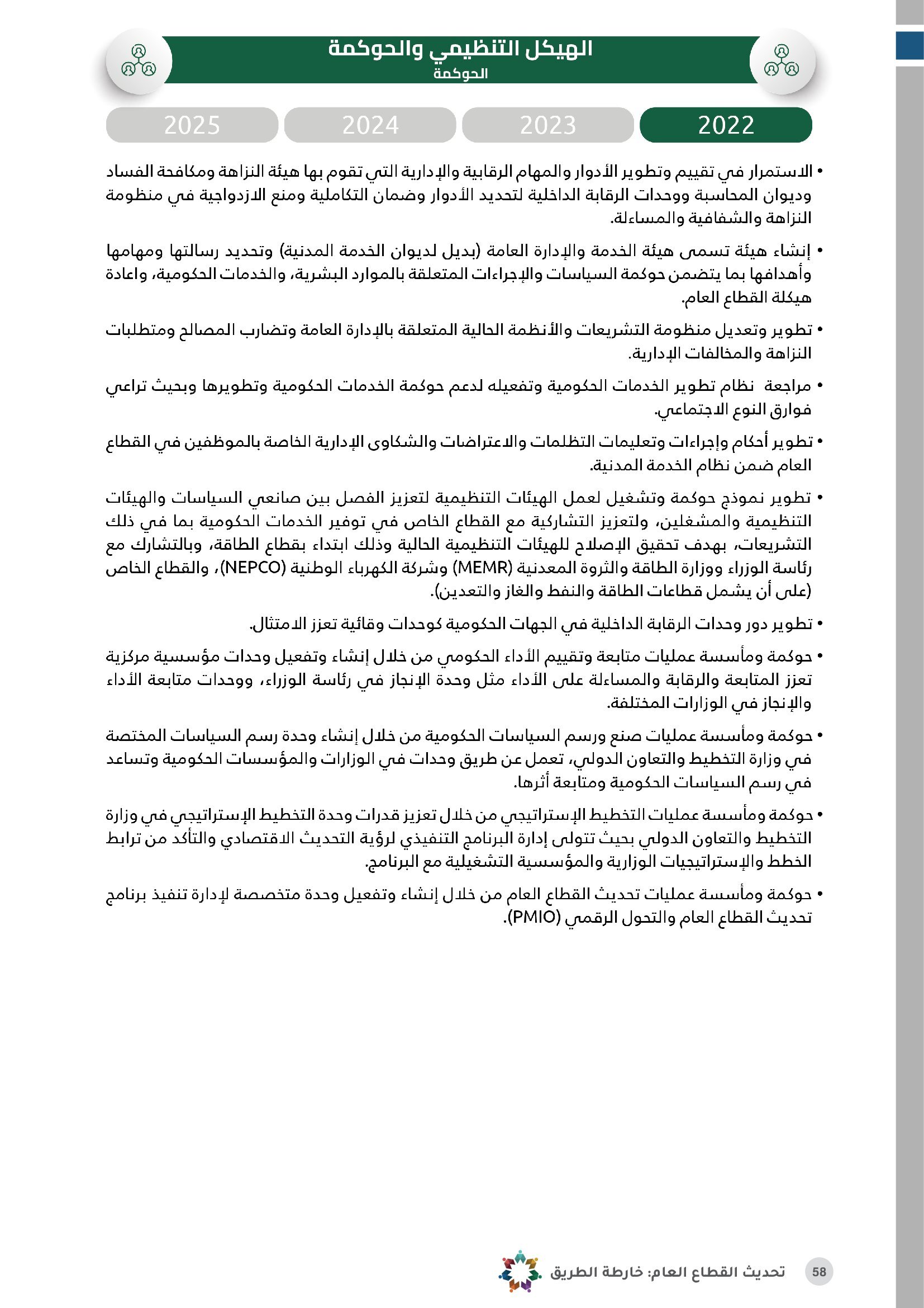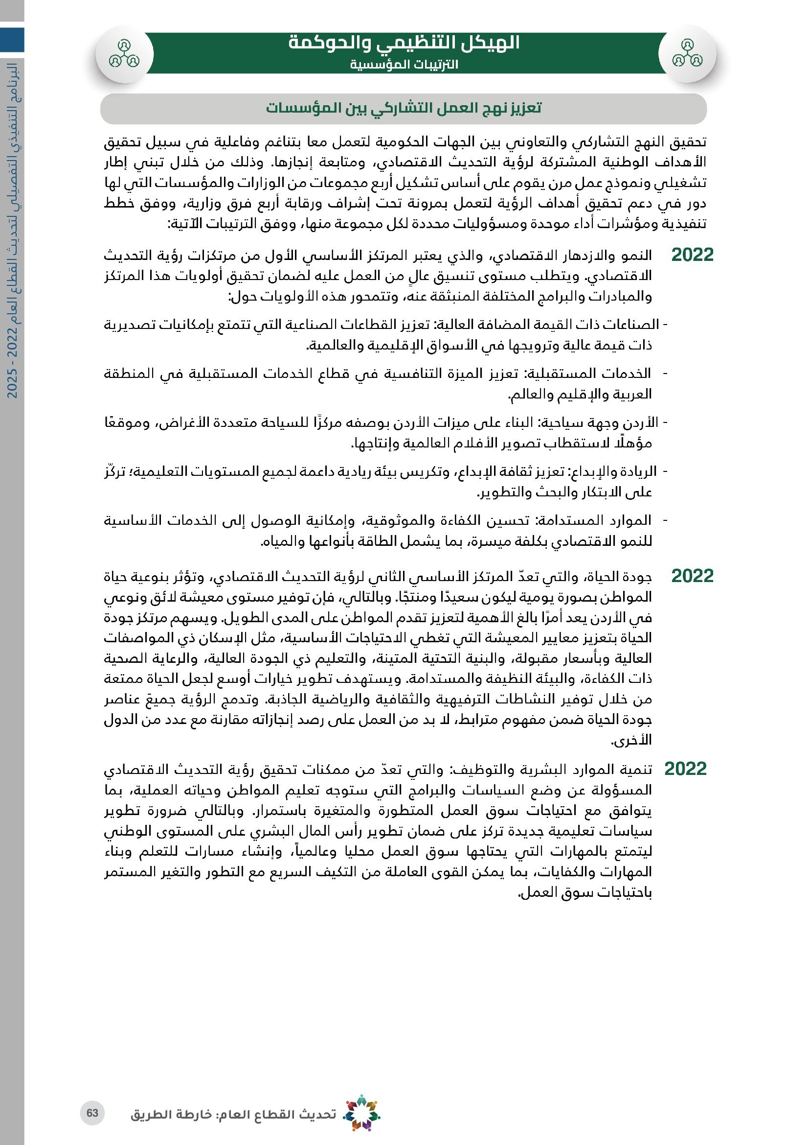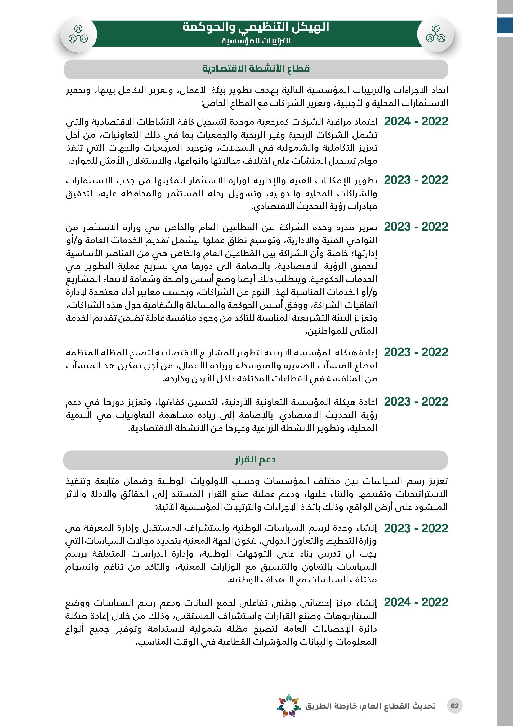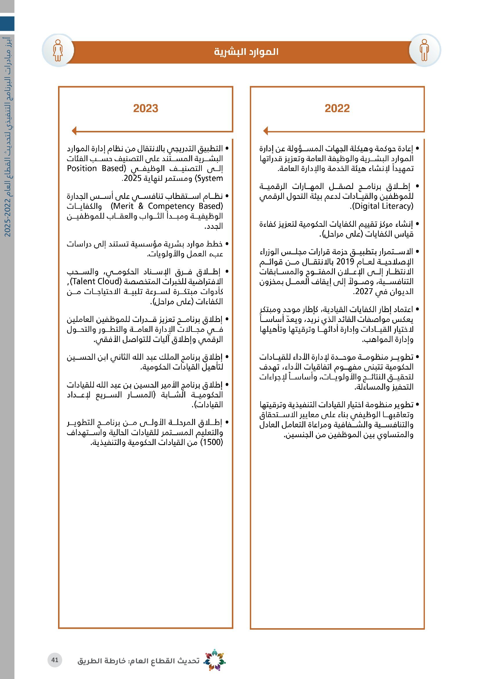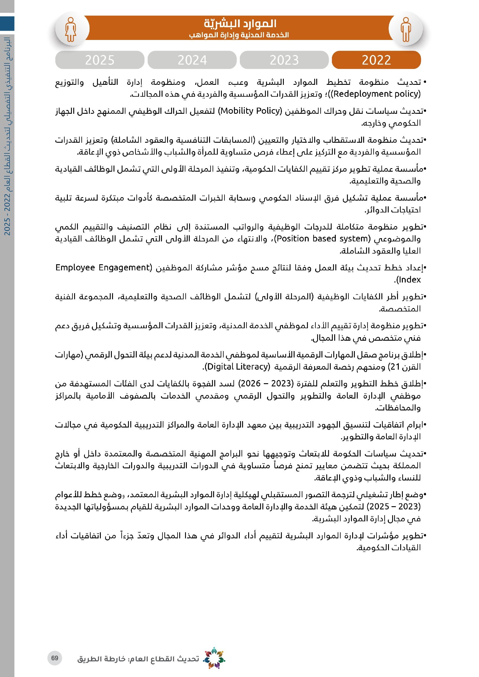 رئيس الوزراء الدكتور بشر الخصاونة، قال إن الخطة تبدأ اعمالها هذا العام وتستمر إلى العام 2025 لنصل إلى قطاع عام ممكن يحقق التنمية للاردن والرفاه للمواطنين.