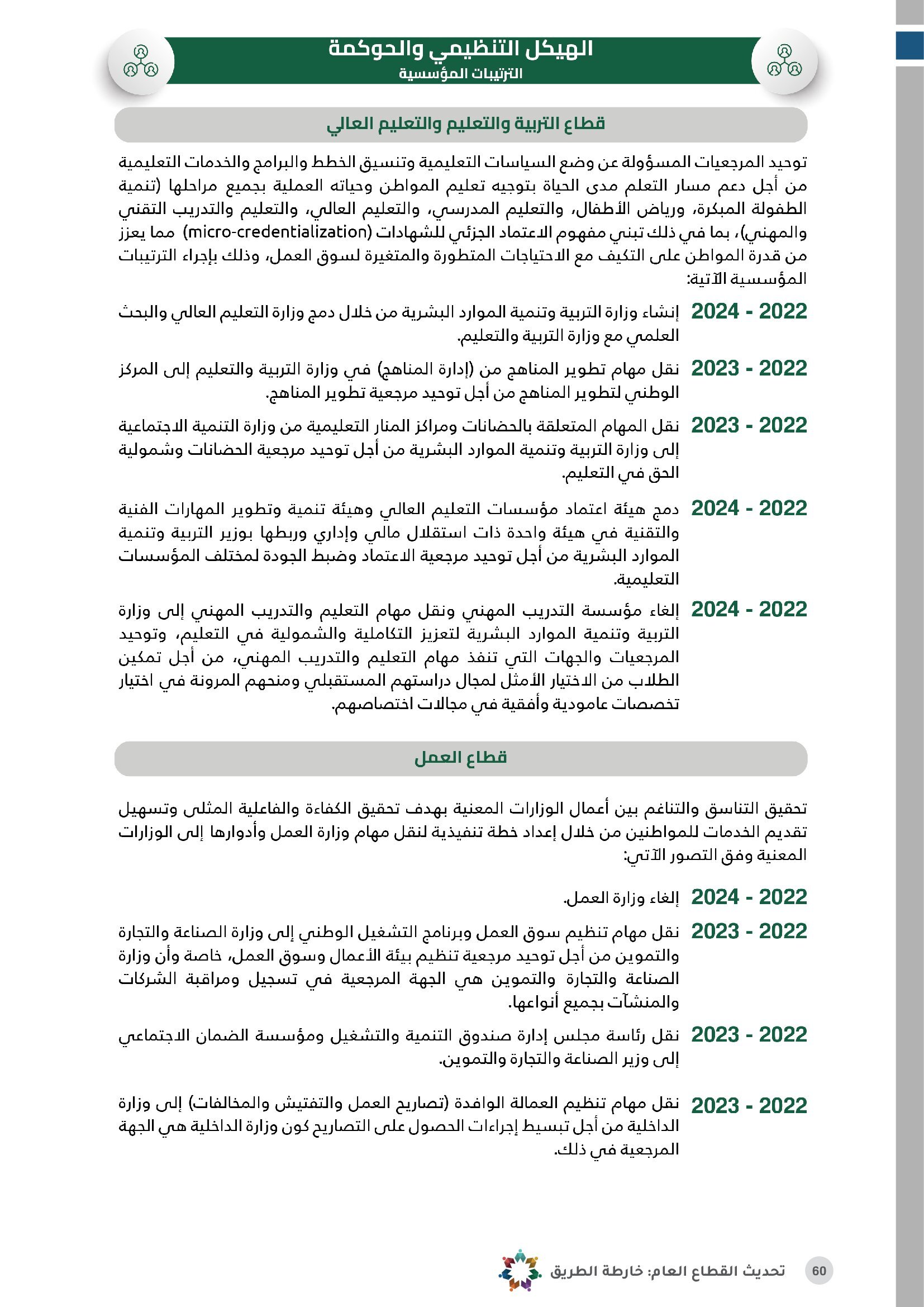 وأكد أن الدمج بين وزارات ودوائر حكومية خلال الفترة من 2022 حتى 2024 دون المساس بحقوق العاملين او الاستغناء عن خدماتهم.