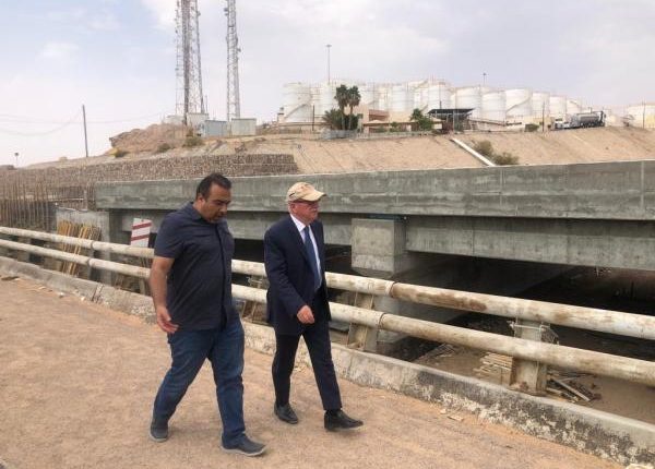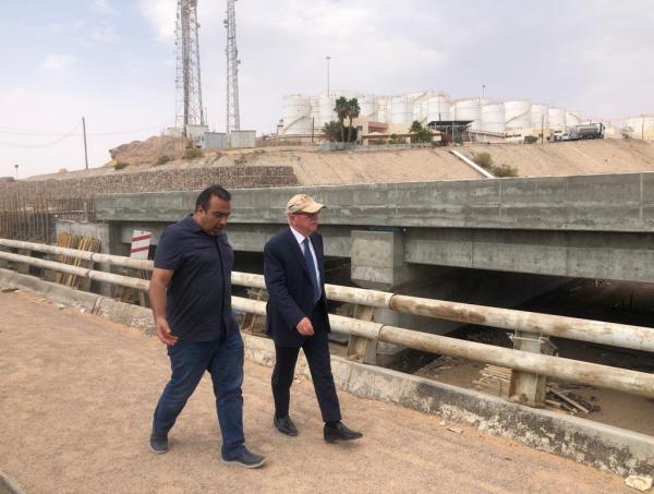 إلى ذلك، تفقد وزير الأشغال سير الأعمال بمشروع إنشاء جسر خرساني للمركبات بالقرب من ميناء النفط (جسر النفط) في محافظة العقبة بدلاً من الجسر الخرساني القديم.