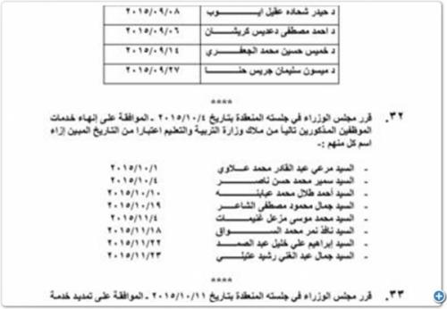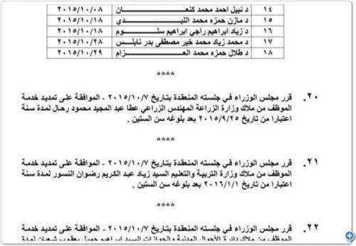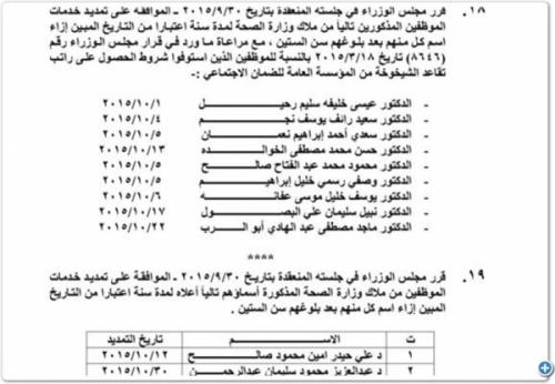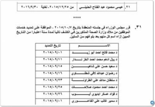وتاليا اسماء الموظفين الممدد لهم: