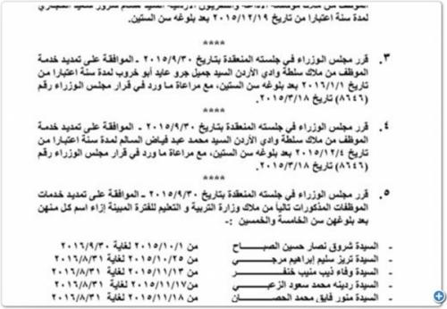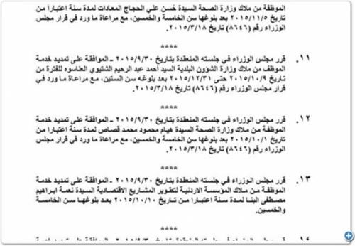 وكالة الناس –  قررت الحكومة الاردنية صباح اليوم الاربعاء تمديد خدمة لاكثر من 180 موظفا حكومياً لمدة عام كامل بعد بلوغهم الستين عاما.