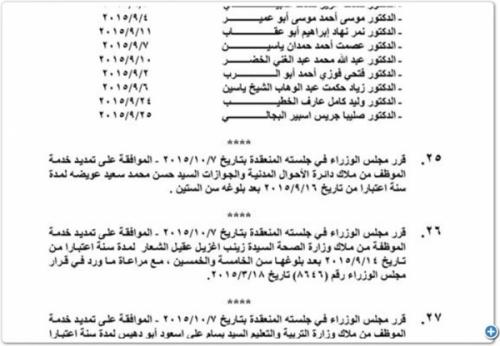 بالاسماء : تمديد خدمة 180 موظفا حكومياً لمدة عام كامل بعد بلوغهم الستين عاماً