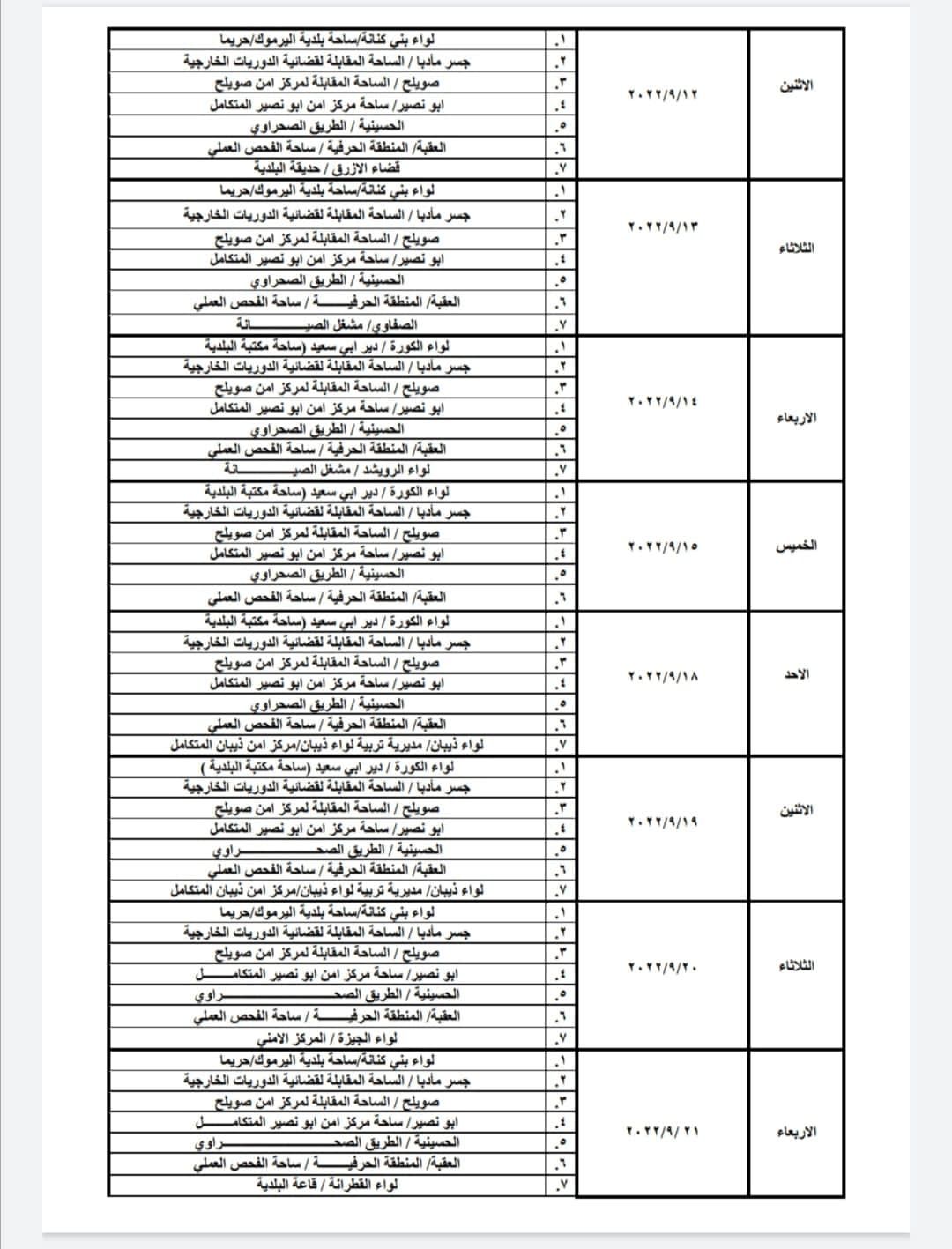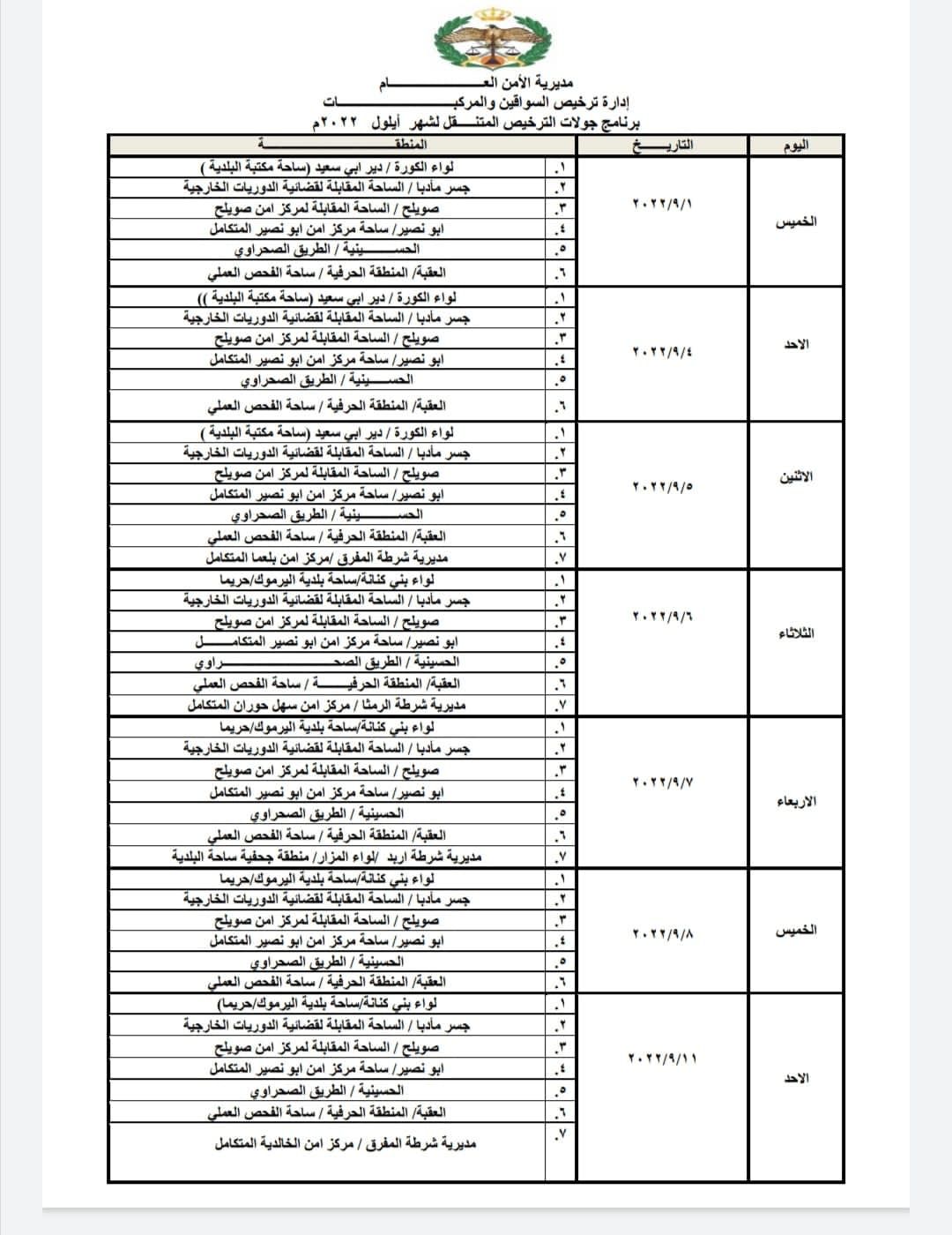 مواعيد ومواقع محطات الترخيص المتنقلة لشهر أيلول