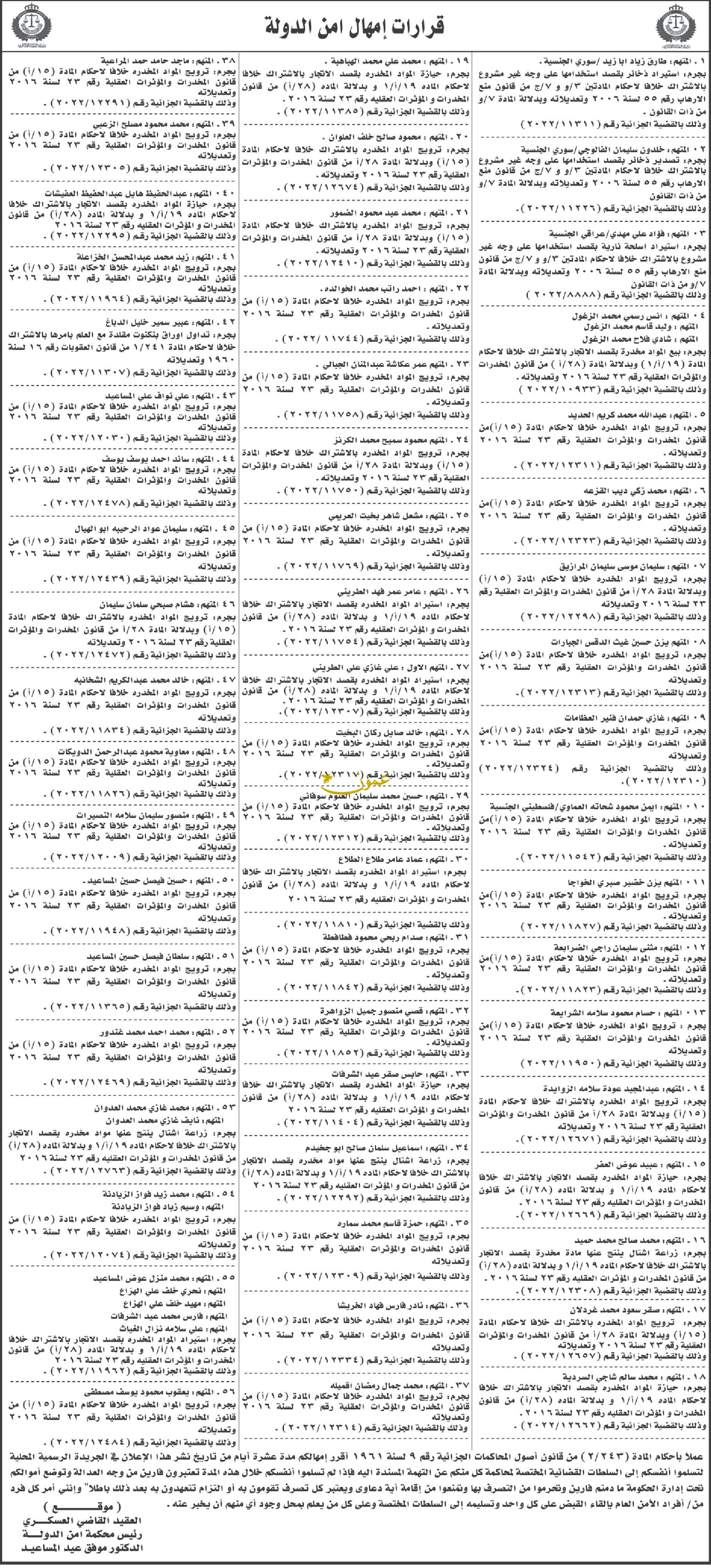 ونشرت المحكمة، أسماء المتهمين، عملا بأحكام المادة 243 /2 من قانون أصول المحاكمات الجزائية رقم 9 لسنة 1961.