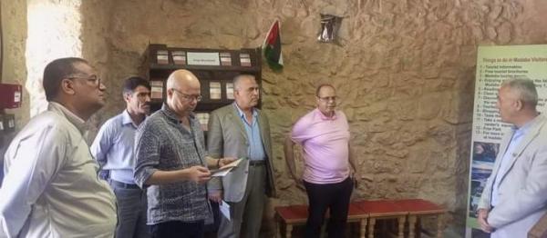 واستمع الوفد الزائر إلى شرح عن مأدبا ومواقعها التاريخية والأثرية والدينية ومساراتها السياحية المتنوعة والمتعددة وطابعها الفسيفسائي الذي أهلها للفوز بلقب عاصمة السياحة العربية.