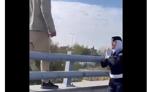 شرطية اردنية تثني شاباً عن إلقاء نفسه ‐ فيديو