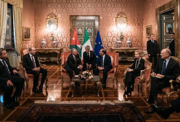 وحضر اللقاءين نائب رئيس الوزراء ووزير الخارجية وشؤون المغتربين أيمن الصفدي، ومدير مكتب جلالة الملك، الدكتور جعفر حسان، والسفير الأردني في إيطاليا قيس أبو ديه.