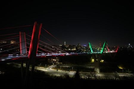 إضاءة جسر عبدون بألوان العلم المغربي