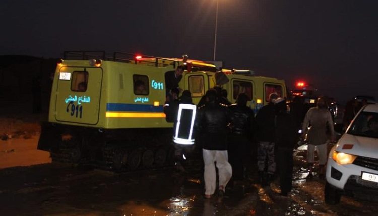 وكانت كوادر الدفاع المدني قد تعاملت كذلك مع حادثة اخرى لمحاصرة ركاب حافلة اخرى بمنطقة المريغة في محافظة معان وجرى إخلاء 13 راكبا وأُسعفوا للمستشفى للعلاج .