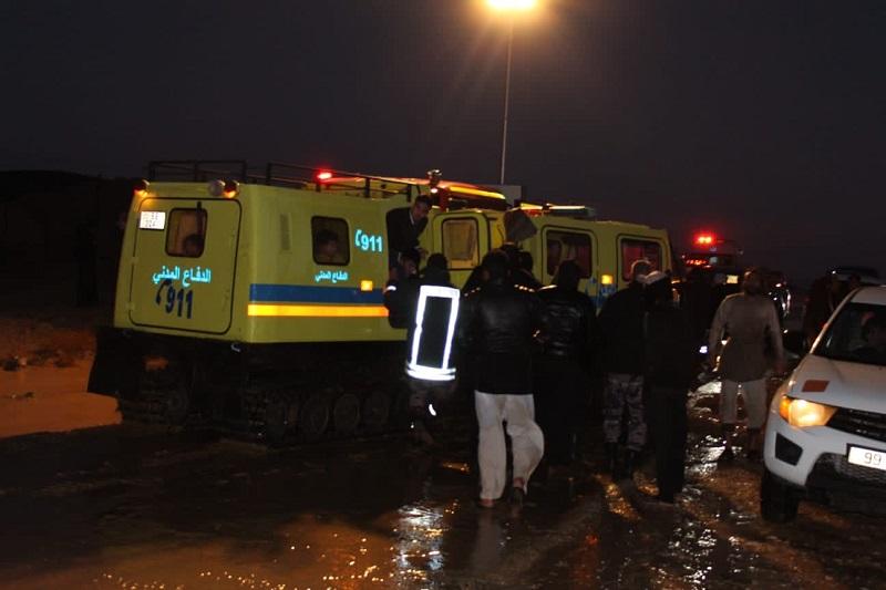 وكالة الناس ــ قال الناطق الإعلامي باسم مديرية الأمن العام إنّ فرق الدفاع المدني المتخصصة والعاملة في مديرية دفاع مدني معان تعاملت مع إنقاذ ركاب حافلة نقل متوسطة بعد محاصرتهم بمياه الأمطار داخل حافلتهم (نقل جماعي) في محافظة معان وذلك بسبب ارتفاع منسوب المياه وسرعة جريانه في الطريق العام .