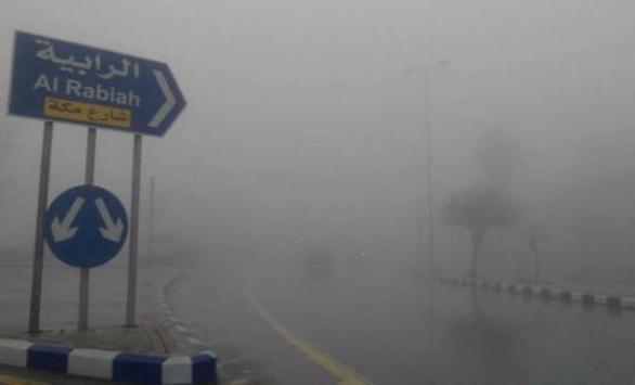 وتشهد مناطق واسعة من المملكة ضبابًا كثيفًا يؤدي إلى تدني مدى الرؤية الأفقية .