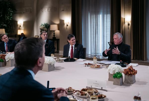وأشاد جلالة الملك بمتانة العلاقات الاستراتيجية التي تربط الأردن والولايات المتحدة الأميركية، مؤكدا الحرص على تعزيزها في المجالات كافة.