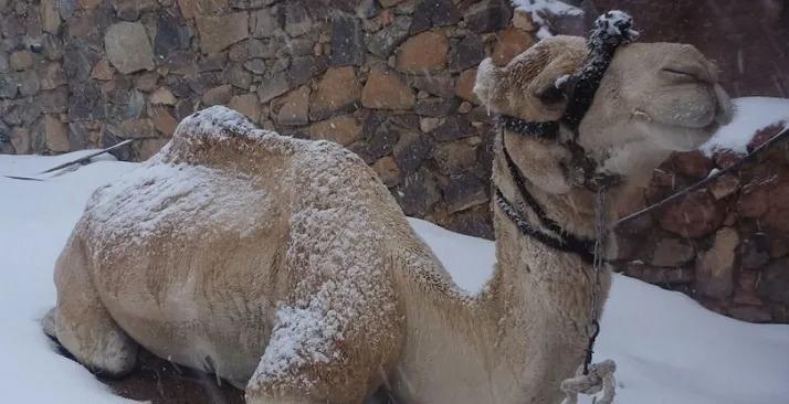 فاجأ الجو “سعد” في منتصف الطريق، حيث أصبح الجو شديد البرودة هطلت الأمطار الغزيرة والثلوج، و إشتد البرد القارس ولم يكن أمام سعد سوى أن يذبح ناقته التي يملكها ليحتمي بفروتها و أحشائها من شدة البرد.