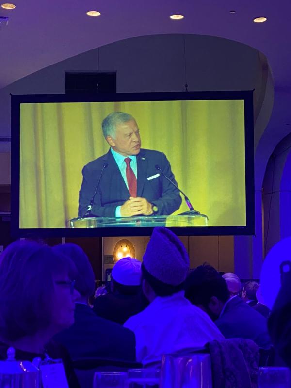 ولفت جلالة الملك في الكلمة، التي ألقاها أمام جمع من القيادات السياسية والفكرية والدينية من الولايات المتحدة وعدد من الدول، بحضور سمو الأمير الحسين بن عبدالله الثاني ولي العهد، إلى استمرار إصرار الأردن على العمل من أجل تحقيق السلام، مؤكدا أن “هناك دائما فرصة للسلام. فالحقيقة هي أن مختلف شعوب الشرق الأوسط قد عاشت عبر تاريخها في وئام لفترات أطول بكثير مما أمضته في تناحر”.