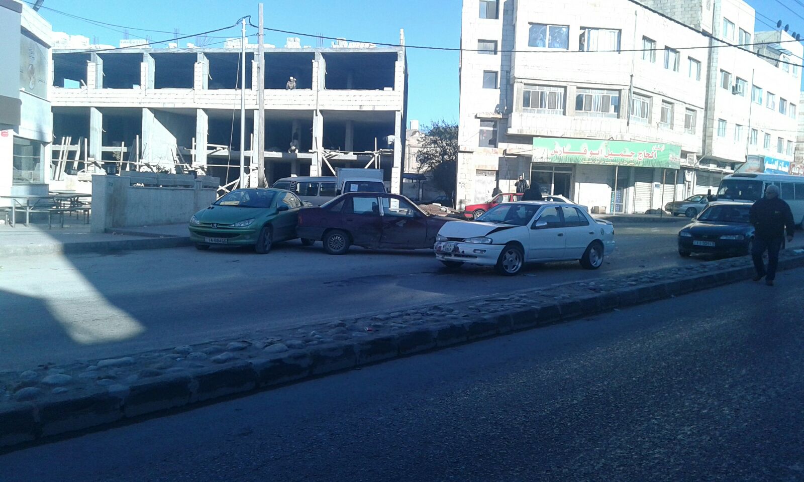 بالصور ..حادث تصادم بين 5 مركبات على دوار المدينة الصناعية في اربد