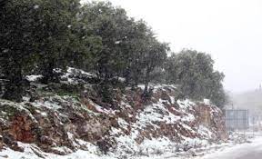 ويحتمل هطول زخات من الثلج بين الحين والآخر فوق قمم الجبال العالية التي يزيد ارتفاعها على 1100متر عن سطح البحر، مع احتمال حدوث تراكمها في ساعات الليل فوق قمم الجبال الجنوبية العالية.