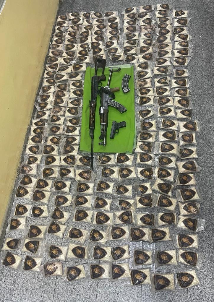 إذ تم الرد عليهما وتطبيق قواعد الاشتباك لحين السيطرة والقاء القبض عليهما وجرى اسعاف احدهما الذي تبين تعرضه للاصابة وبتفتيش المركبة عُثر بداخلها 200 الف حبة مخدرة وثلاثة اسلحة نارية اثنان منها أتوماتيكيان.