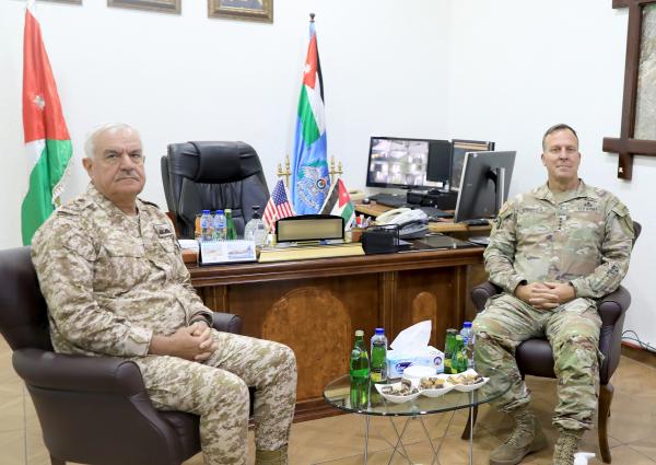 وكالة الناس – اجتمع رئيس هيئة الأركان المشتركة اللواء الركن يوسف أحمد الحنيطي، أمس الثلاثاء، مع قائد القيادة المركزية الأمريكية الفريق أول مايكل كوريلا، في قيادة مركز القيادة والسيطرة التابع لسلاح الجو الملكي الأردني.