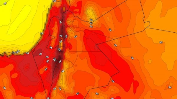 ومع تزايد ارتفاع درجات الحرارة يوم الجمعة يُتوقع أن تتراوح العُظمى ما بين مطلع ومُنتصف الثلاثين مئوية في أغلب مناطق المملكة الرئيسية بما فيها أحياء من العاصمة عمان، وتتجاوز الأربعينيات مئوية في مناطق الأغوار والبحر الميت لأول مرة هذا العام وبذلك تكون الأغوار اكثر مناطق المملكة حرارة ليوم الجمعة.