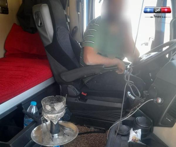 ضبط سائق مركبة يدخن الأرجيلة أثناء المسير على طريق شويعر