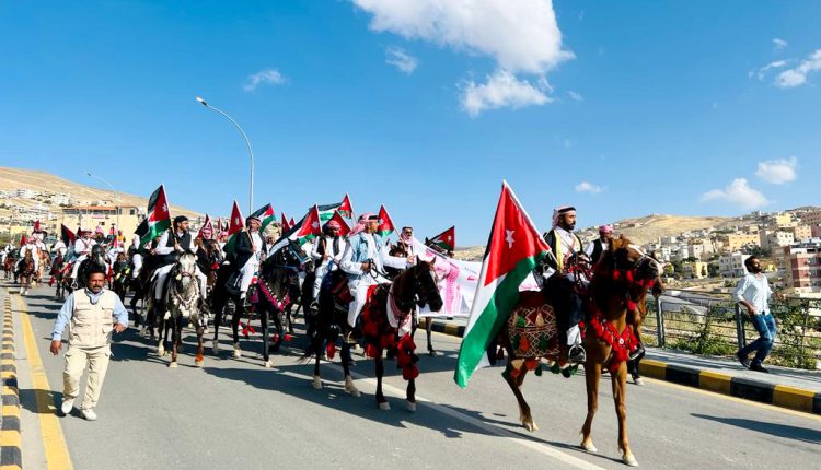 وبدأت فعاليات الاحتفال بمسيرة وزفة شعبية حاشدة سيرا على الأقدام انطلقت من وسط مدينة وادي موسى باتجاه موقع الحفل الرئيس، في الشارع السياحي بالقرب من مركز زوار البترا تقدمتها الخيول والهجانة ورفعت فيها الأعلام الأردنية وصور جلالة الملك عبدالله الثاني وسمو ولي العهد، فيما صدحت حناجر المشاركين بالأغاني الوطنية والأهازيج الشعبية والفلكلورية.