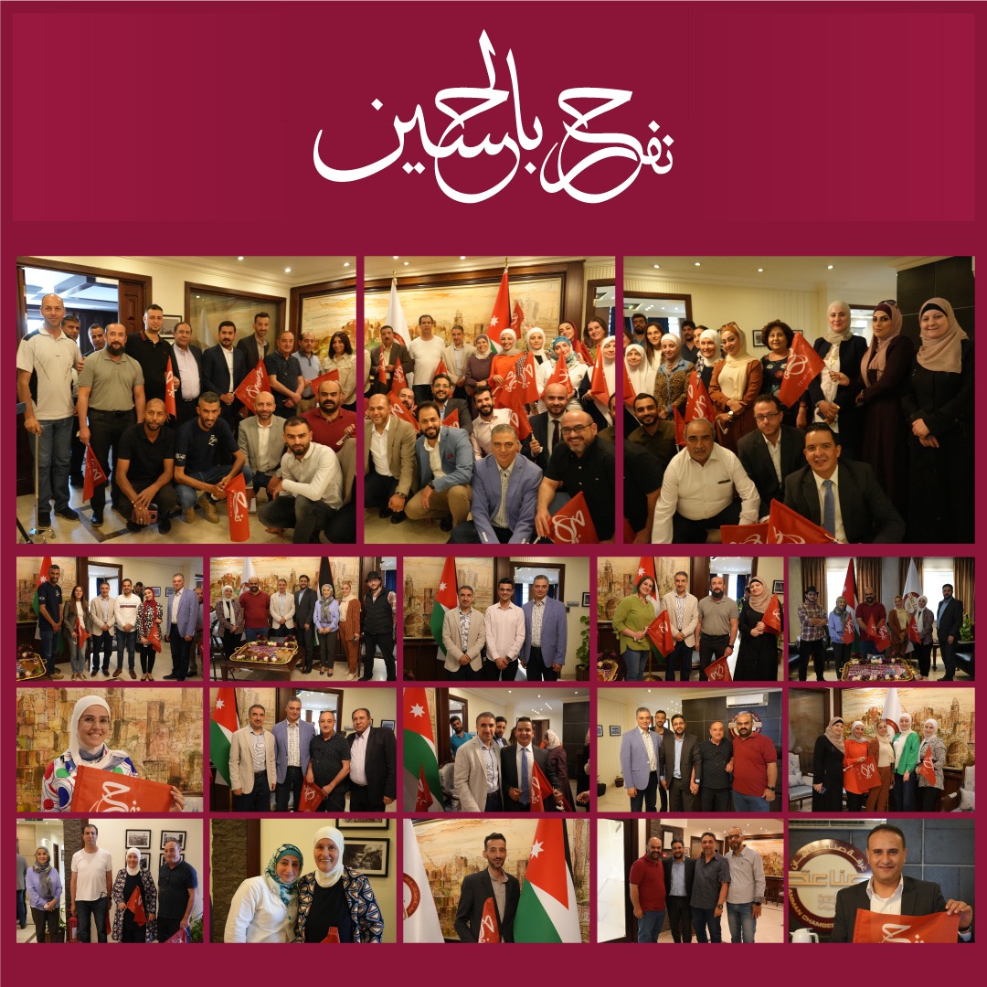 وكالة الناس – أقامت اللجنة الاجتماعية لغرفة صناعة عمان احتفالا في مبنى الغرفة بمناسبة زفاف ولي العهد صاحب السمو الملكي الأمير الحسين بن عبدالله الثاني، ورفع مدير عام الغرفة الدكتور نائل الحسامي وموظفوها أسمى آيات التهنئة والتبريك لمقام جلالة الملك عبدالله الثاني المعظم، وجلالة الملكة رانيا العبدالله، وسمو ولي العهد الأمين الامير الحسين، بمناسبة الزفاف.