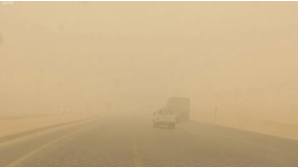 -الانتباه من تدني وربما انعدام الرؤية الأفقية بسبب نشوء بعض العواصف الرملية خاصة على الطرق الصحراوية