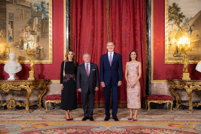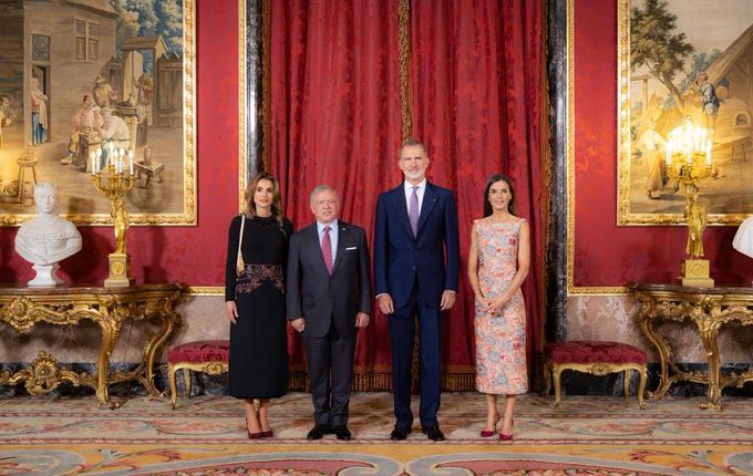 وقال جلالته خلال لقائه في مدريد جلالة الملك فيليب السادس ملك إسبانيا، بحضور جلالة الملكة رانيا العبدالله وجلالة الملكة ليتيزيا، “إن التزامنا المشترك بالسلام واضح من خلال دعمنا لحل الدولتين كونه السبيل الوحيد لحل الصراع الفلسطيني-الإسرائيلي”.