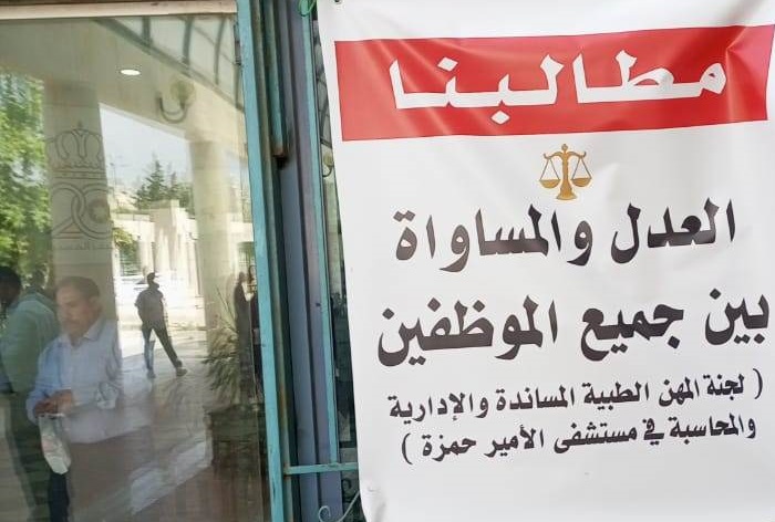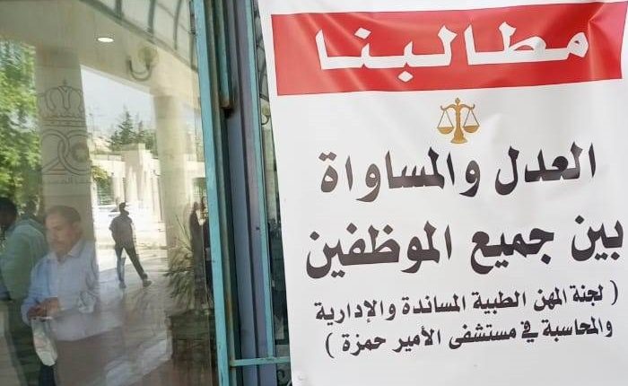وكالة الناس – لوحت لجنة المهن الطبية المساندة والإدارية والمحاسبة في مستشفى الأمير حمزة بالاعلان عن اضراب مفتوح عن العمل خلال المرحلة المقبلة في ظل تجاهل الوزارة لمطالب العاملين .