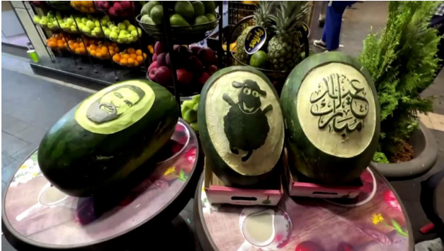 وقال هندي إن نحت بطيخة واحدة يستغرق حوالي ساعتين وإنه يستطيع عمل “جميع أنواع الرسوم” عليها.