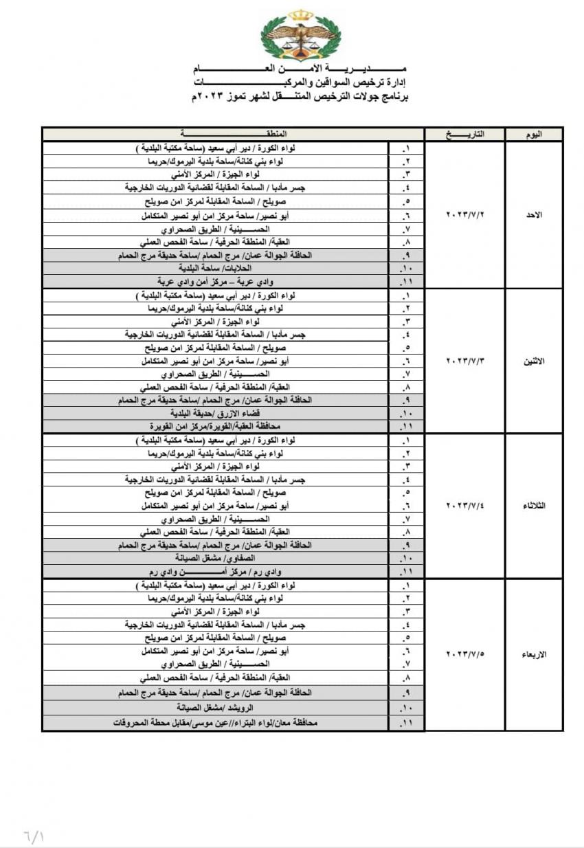 مواعيد جولات الترخيص المتنقل خلال تموز